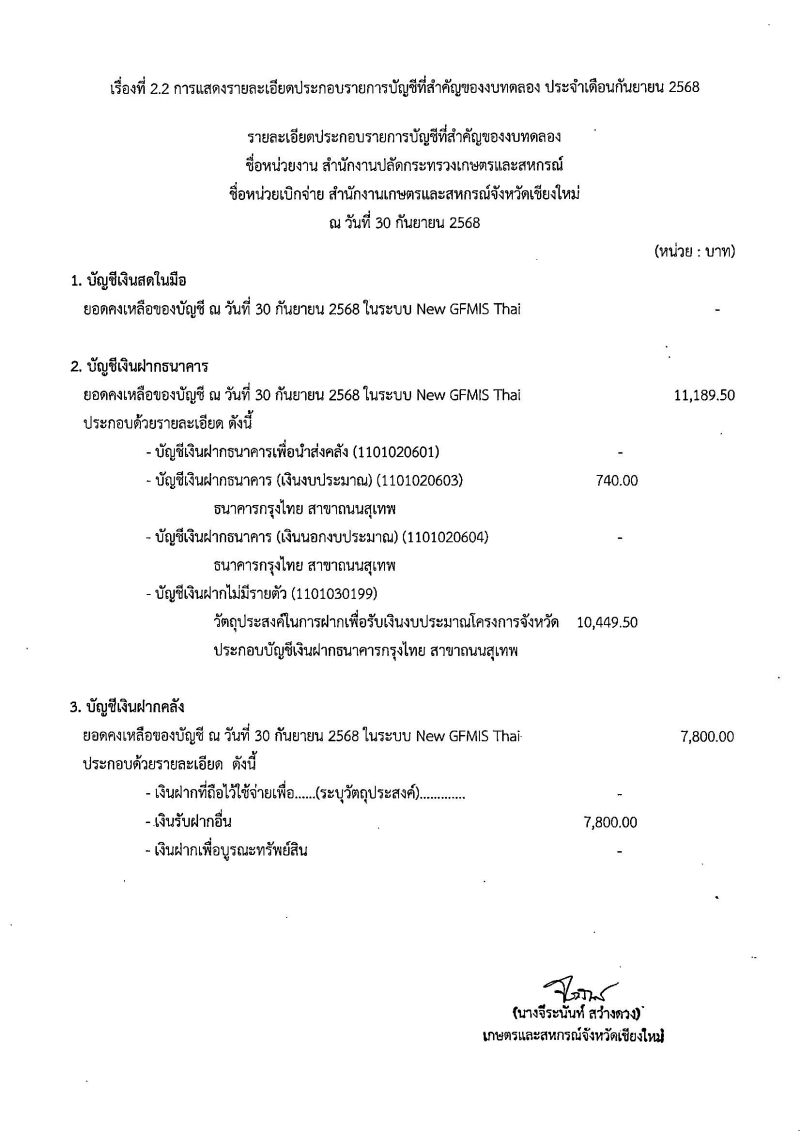 ประกาศสำนักงานเกษตรและสหกรณ์จังหวัดเชียงใหม่ เรื่อง  เผยแพร่ข้อมูลงบทดลองเพื่อเปิดเผยสู่สาธารณะ ประจำเดือนกันยายน 2568