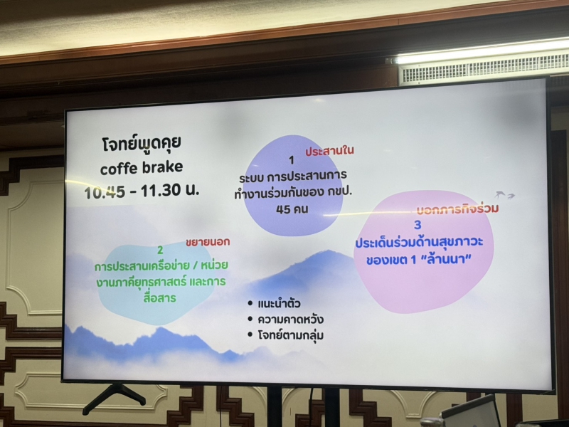 วันศุกร์ที่ 23 มกราคม 2569 เวลา 09.00 - 15.00 น. นางจีระนันท์ สว่างดวง เกษตรและสหกรณ์จังหวัดเชียงใหม่ มอบหมายให้นางอรอุมา ศรีนุต นักวิเคราะห์นโยบายและแผนชำนาญการ กลุ่มยุทธศาสตร์พัฒนาการเกษตร เข้าร่วมการประชุมคณะกรรมการเขตสุขภาพเพื่อประชาชน เขตพื้นที่ 1 ครั้งที่ 1/2569 ณ ห้องประชุมลานนาไทย โรงแรมเชียงใหม่ออคิด จังหวัดเชียงใหม่ โดยมี ดร.น.พ.พิศิษฐ์ ศรีประเสริฐ ประธานคณะกรรมการเขตสุขภาพเพื่อประชาชน เขตพื้นที่ 1 เป็นประธานในการประชุม และนายสุทธิพงษ์ วสุโสภาพล รองเลขาธิการคณะกรรมการสุขภาพแห่งชาติ ร่วมประชุม
