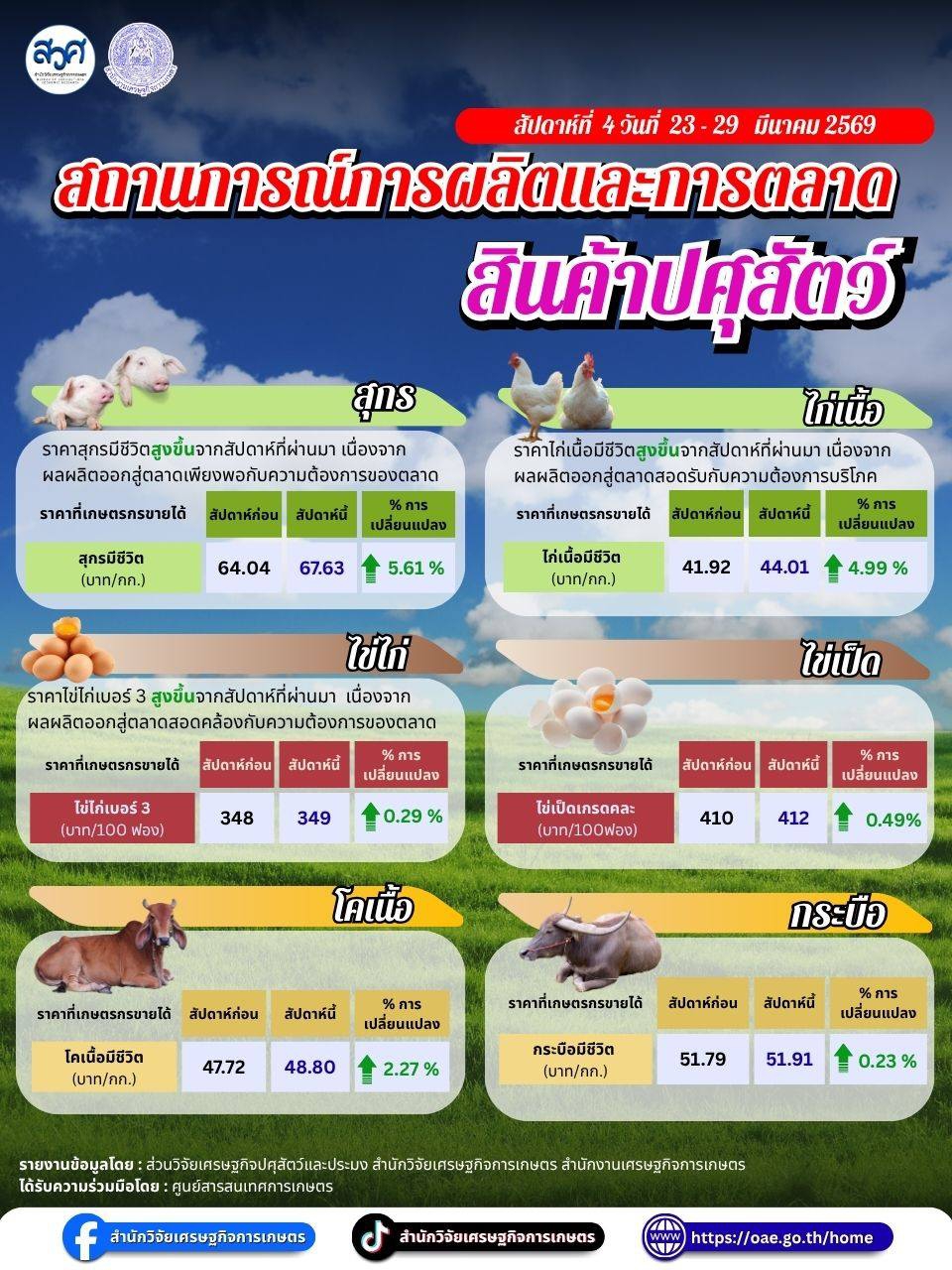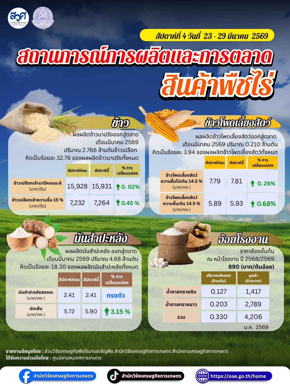 สถานการณ์การผลิตและการตลาด สินค้าเกษตร สัปดาห์ที่ 4 วันที่ 23-29 มีนาคม 2569