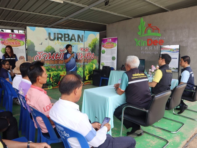 จากนั้นช่วงบ่ายลงพื้นที่กินดีฟาร์ม หมู่ที่ 2 ตำบลถ้ำน้ำผุด อำเภอเมืองพังงา จังหวัดพังงา ลักษณะของพื้นที่ Young smart farmer กินดี ชีวิตดี Goodlife พืชผักปลอดภัยสร้างคลังอาหารชุมชน แหล่งปลูกผักไฮโดรโปนิกส์โรงเรือน ผักไทย และเมลอน ซึ่งมีการขยายผลงานวิจัยส่งเสริมการใช้ปุ๋ยที่เหมาะสมสำหรับผักไฮโดรโปนิกส์ในโรงเรือนเพื่อลดต้นทุนการผลิต โดยความร่วมมือสำนักงานเกษตรจังหวัดพังงา ร่วมกับคณะทรัพยากรธรรมชาติมหาวิทยาลัยสงขลานครินทร์ โรงเรือนเกษตรอัจฉริยะระบบ smart farm การปลูกพืชมูลค่าสูงเช่นปลูกเมล่อน เคล การแปรรูปผลผลิตทางด้านการเกษตร เป็นกลุ่มแปลงใหญ่ผักปัจจุบันมีสมาชิก 34 คน พื้นที่รวม 34 ไร่ ปริมาณผลผลิตของกลุ่มแปลงใหญ่ผักไทย 3,900 กิโลกรัม/ไร่/ปี ผักสลัด 3,600 กิโลกรัม/ไร่/ปี สอดคล้องนโยบายกระทรวงเกษตร ตลาดนำการผลิต สร้างความเข้มแข็งในสถานบันเกษตรกร และเป็นศูนย์เรียนรู้ต้นแบบแก่ผู้ที่สนใจ