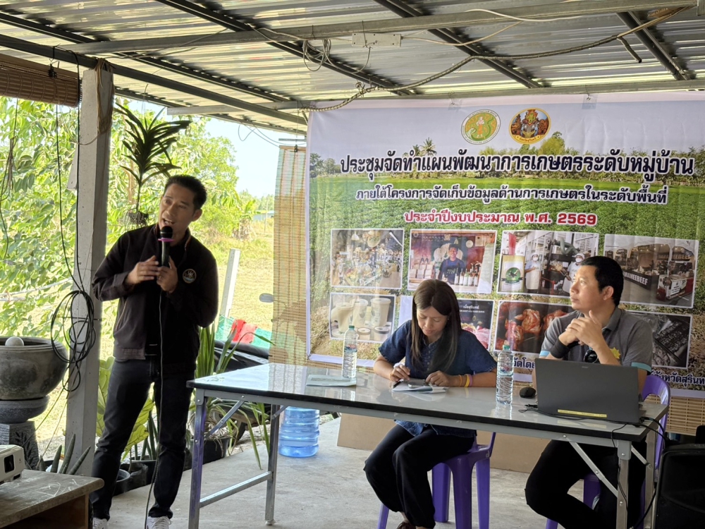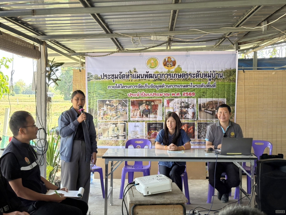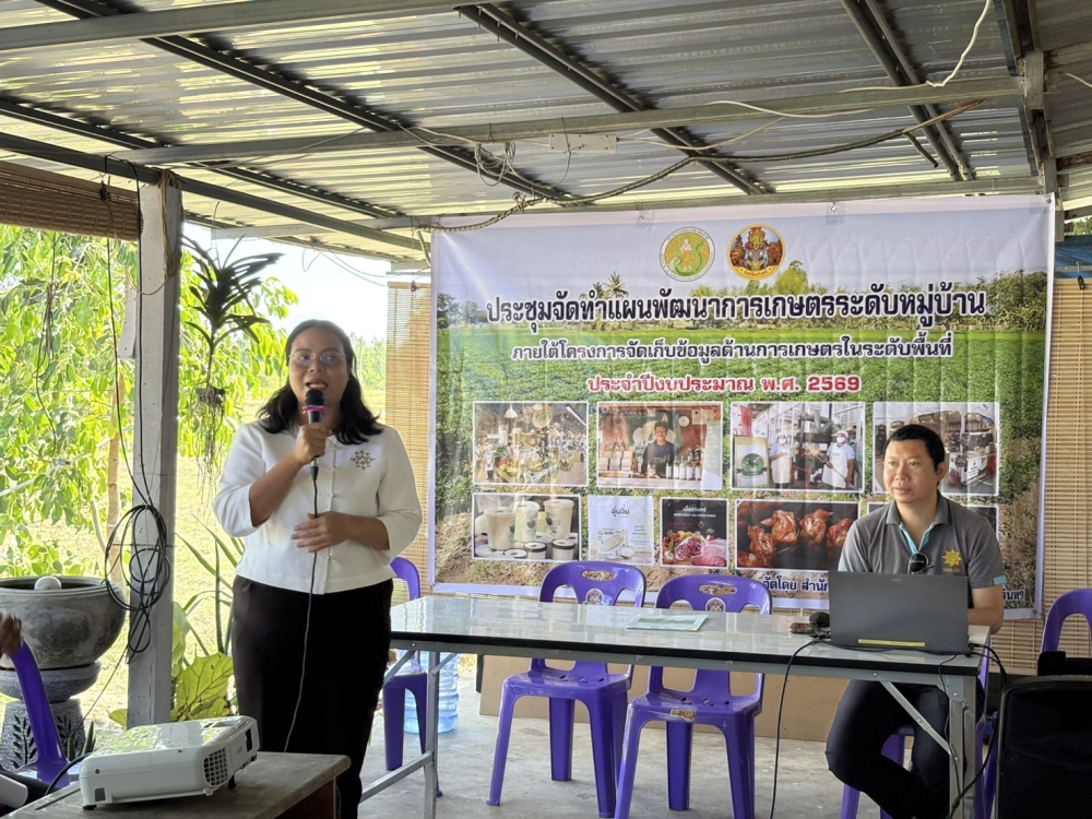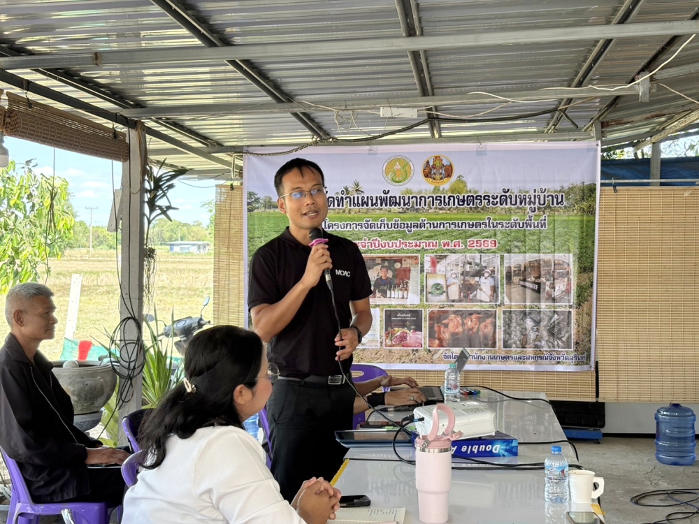 วันที่ 10 มีนาคม 2569 เวลา 09.30 น. นายวิวัฒน์ชัย หนูทอง เกษตรและสหกรณ์จังหวัดสุรินทร์ มอบหมายให้ ว่าที่ร้อยตรีอัศวพล นาจรูญ นักวิเคราะห์นโยบายและแผนชำนาญการ และ นางสาวพิมพญา ลัทธิคุณ นักวิเคราะห์นโยบายและแผนปฏิบัติการ จัดประชุมจัดทำแผนพัฒนาการเกษตรระดับหมู่บ้าน ภายใต้โครงการจัดเก็บข้อมูลด้านการเกษตรในระดับพื้นที่ ประจำปีงบประมาณ พ.ศ. 2569 ณ ที่ทำการกลุ่มวิสาหกิจชุมชนผู้เลี้ยงไก่เนื้อลูกผสมไก่โคราชตำบลหนองสนิท หมู่ที่ 3 บ้านสำโรง ตำบลหนองสนิท อำเภอจอมพระ จังหวัดสุรินทร์ เพื่อชี้แจงแนวทางการจัดทำแผนพัฒนาการเกษตรระดับหมู่บ้านและจัดทำแผนพัฒนาการเกษตรระดับหมู่บ้าน, การจัดทำโครงการ/กิจกรรมภายใต้แผนพัฒนาการเกษตรระดับหมู่บ้านและแผนธุรกิจเกษตรรายสินค้า โดยมี นางสาวนันทา เพราะทอง เกษตรอำเภอจอมพระ และส่วนราชการที่เกี่ยวข้องเข้าร่วมประชุมดังกล่าว