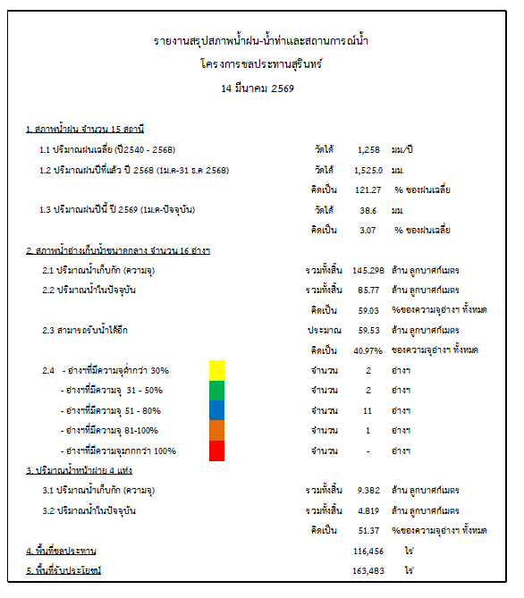 สถานการณ์น้ำจังหวัดสุรินทร์ ประจำวันที่ 14 มีนาคม 2569