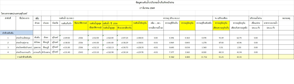 สถานการณ์น้ำจังหวัดสุรินทร์ ประจำวันที่ 17 มีนาคม 2569
