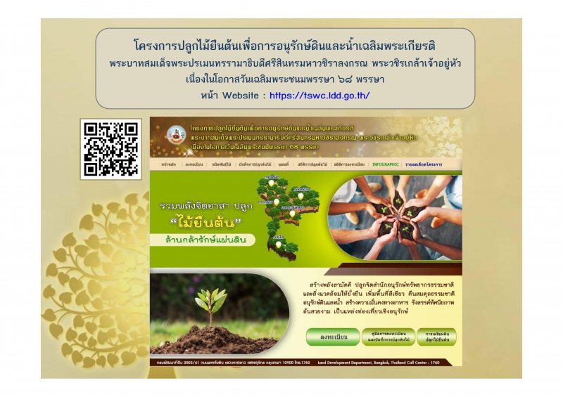 1.1 โครงการ ปลูกไม้ยืนต้น เพื่อการอนุรักษ์ดินและน้ำ เฉลิมพระเกียรติพระบาทสมเด็จพระเจ้าอยู่หัว เนื่องในโอกาสวันเฉลิมพระชนมพรรษา ครบ 68 พรรษา ลงทะเบียนที่ WWW.Idd.go.th โดย กรมพัฒนาที่ดิน กระทรวงเกษตรและสหกรณ์ “1 ล้านกล้าทั่วประเทศ สถานีพัฒนาที่ดินอำนาจเจริญ สนับสนุน 10,000 กล้า”