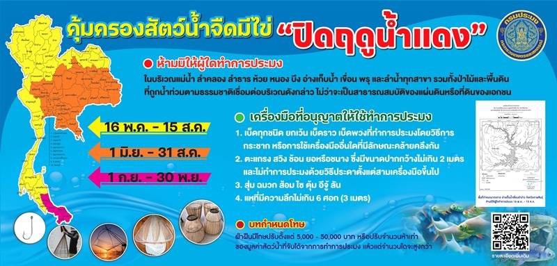 1. จังหวัดอำนาจเจริญ คุ้มครองสัตว์น้ำจืดมีไข่ ในฤดูน้ำแดง งดจับสัตว์น้ำในช่วง 1 มิถุนายน 2568 – 31 สิงหาคม 2568