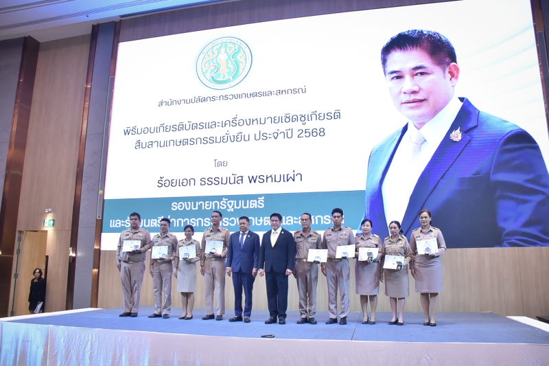 วันจันทร์ที่ 22 กันยายน 2568 เวลา 09.45 น. นางปารีณา สอนอาจ เกษตรและสหกรณ์จังหวัดอำนาจเจริญ พร้อมด้วยนายธวัชชัย นาราษฎร์ หัวหน้ากลุ่มช่วยเหลือเกษตรกรและโครงการพิเศษ สำนักงานฯ เข้ารับเกียรติบัตรและเครื่องหมายเชิดชูเกียรติสืบสานเกษตรกรรมยั่งยืนประจำปี 2568 โดยมีนายธรรมนัส พรหมเผ่า รองนายกรัฐมนตรี และรัฐมนตรีว่าการกระทรวงเกษตรและสหกรณ์ ให้เกียรติมอบเกียรติบัตรและเครื่องหมายเชิดชูเกียรติสืบสานเกษตรกรรมยั่งยืนประจำปี 2568 ให้แก่บุคลากรกระทรวงเกษตรและสหกรณ์ ณ โรงแรมแกรนด์ ริชมอนด์ จังหวัดนนทบุรี
