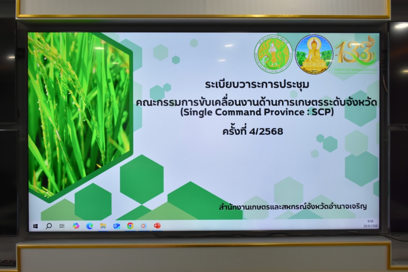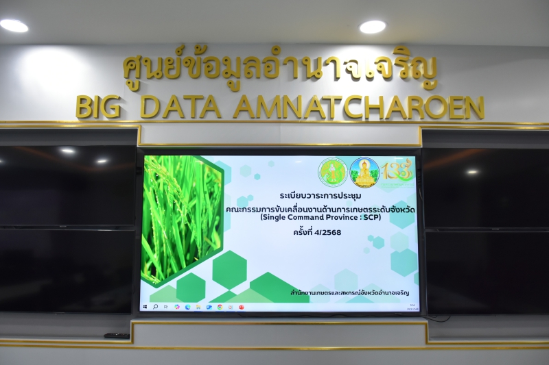 วันจันทร์ที่ 29 กันยายน พ.ศ. 2568 เวลา 10.30 น. นางปารีณา สอนอาจ เกษตรและสหกรณ์จังหวัดอำนาจเจริญ เป็นประธานการประชุมคณะกรรมการขับเคลื่อนงานด้านการเกษตรระดับจังหวัด จังหวัดอำนาจเจริญ (Single Command Province : SCP) ครั้งที่ 4/2568 ณ ห้องประชุมศูนย์ข้อมูลอำนาจเจริญ (BIG DATA AMNATCHAROEN) ชั้น 3 โดยมีคณะกรรมการฯ เข้าร่วมประชุมเพื่อติดตามสถานการณ์ด้านการเกษตรด้านพืช ด้านปศุสัตว์ ด้านประมง สถานการณ์ด้านชลประทาน สถานการณ์น้ำและภัยพิบัติด้านการเกษตร ติดตามดำเนินงานและการพัฒนาต่อเนื่อง (Follow up) ของผู้รับบริการคลินิกเกษตรแบบเบ็ดเสร็จ จากการจัดงานคลินิกเกษตรเคลื่อนที่ในพระราชานุเคราะห์ ฯ ปี 2567 นโยบายรัฐบาลที่เกี่ยวกับงานของกระทรวงเกษตรและสหกรณ์