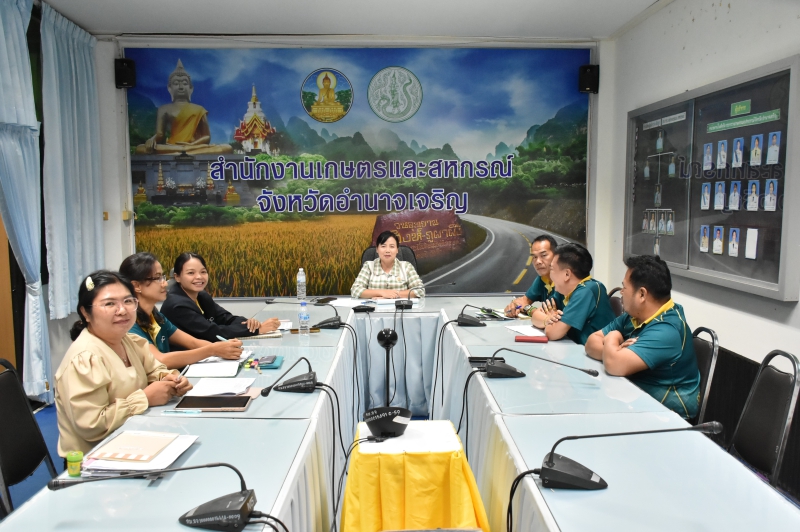 วันพุธที่ 15 ตุลาคม พ.ศ. 2568 เวลา 15.30 น. นางปารีณา สอนอาจ เกษตรและสหกรณ์จังหวัดอำนาจเจริญ เป็นประธานการประชุมข้าราชการ พนักงานราชการและเจ้าหน้าที่สำนักงานเกษตรและสหกรณ์จังหวัดอำนาจเจริญ ครั้งที่ 1/2569 โดยประธานได้มอบหมายฝ่ายบริหารงานทั่วไป กลุ่มช่วยเหลือเกษตรกรและโครงการพิเศษ กลุ่มยุทธศาสตร์พัฒนาการเกษตร และกลุ่มสารสนเทศการเกษตร ดำเนินการจัดทำชุดข้อมูลโครงการจัดเก็บข้อมูลด้านการเกษตรในระดับพื้นที่ ของสำนักงานปลัดกระทรวงเกษตรและสหกรณ์ ปีงบประมาณ พ.ศ. 2569 จำนวน 9 ชุด ให้แล้วเสร็จทันกำหนด เพื่อสนับสนุนการบริหารจัดการข้อมูลภาคเกษตรให้เป็นระบบ มีประสิทธิภาพ และเป็นเอกภาพ สามารถใช้เป็นเครื่องมือในการพัฒนาและแก้ไขปัญหาด้านการเกษตรในพื้นที่ รวมทั้งสนับสนุนการใช้ข้อมูลในการปฏิบัติงานที่เชื่อมโยงกันระหว่างส่วนกลางและส่วนภูมิภาค และสร้างการมีส่วนร่วมของทุกภาคส่วนในการขับเคลื่อนงานด้านการเกษตรให้บรรลุผลสัมฤทธิ์ จากนั้นเป็นการมอบหมายการปฏิบัติหน้าที่ของเจ้าหน้าที่สำนักงานฯ และการดำเนินการจัดทำคำรับรองของเจ้าหน้าที่สำนักงานเกษตรและสหกรณ์จังหวัดอำนาจเจริญ ณ ห้องประชุมสำนักงานเกษตรและสหกรณ์จังหวัดอำนาจเจริญ ศาลากลางจังหวัดอำนาจเจริญ ชั้น 3
