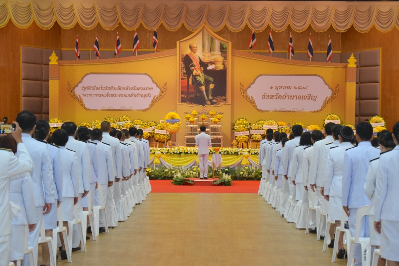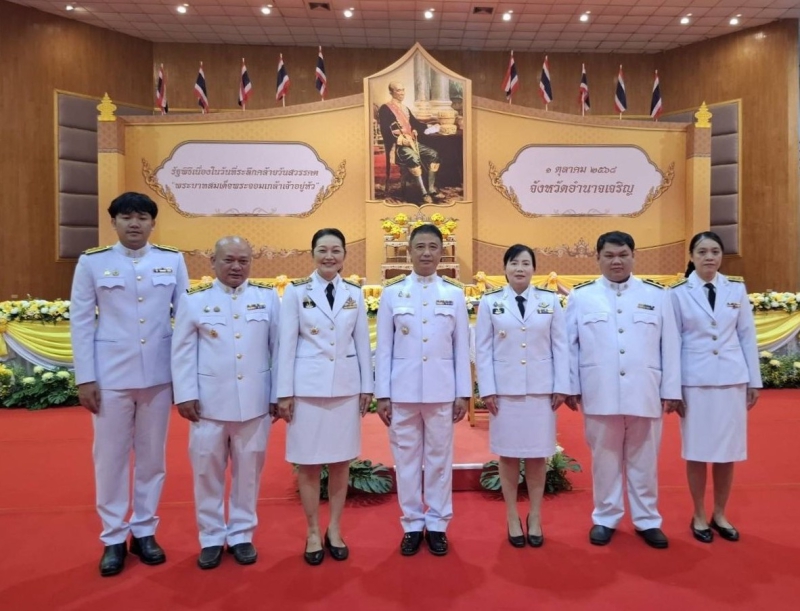 วันพุธที่ 1 ตุลาคม 2568 เวลา 08.00 น. นางปารีณา สอนอาจ เกษตรและสหกรณ์จังหวัดอำนาจเจริญ พร้อมด้วยหัวหน้าส่วนราชการ ข้าราชการและเจ้าหน้าที่หน่วยงานกระทรวงเกษตรและสหกรณ์จังหวัดอำนาจเจริญ เข้าร่วมพิธีวางพวงมาลาถวายรายสักการะเนื่องในวันที่ระลึกคล้ายวันสวรรคต พระบาทสมเด็จพระจอมเกล้าเจ้าอยู่หัว (รัชกาลที่ 4) ประจำปี 2568 เพื่อแสดงออกถึงความจงรักภักดีและสำนึกในพระมหากรุณาธิคุณ โดยมีนายอนุรัตน์ ธรรมประจำจิต ผู้ว่าราชการจังหวัดอำนาจเจริญ เป็นประธานในพิธี พร้อมด้วยนายเสนีย์ ส้มเขียวหวาน รองผู้ว่าราชการจังหวัดอำนาจเจริญ หัวหน้าส่วนราชการ ข้าราชการและเจ้าหน้าที่ ภาครัฐและภาคเอกชนพร้อมใจกันเข้าร่วมพิธี ณ หอประชุมพญานาครินทร์ ศาลากลางจังหวัดอำนาจเจริญ
