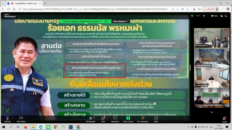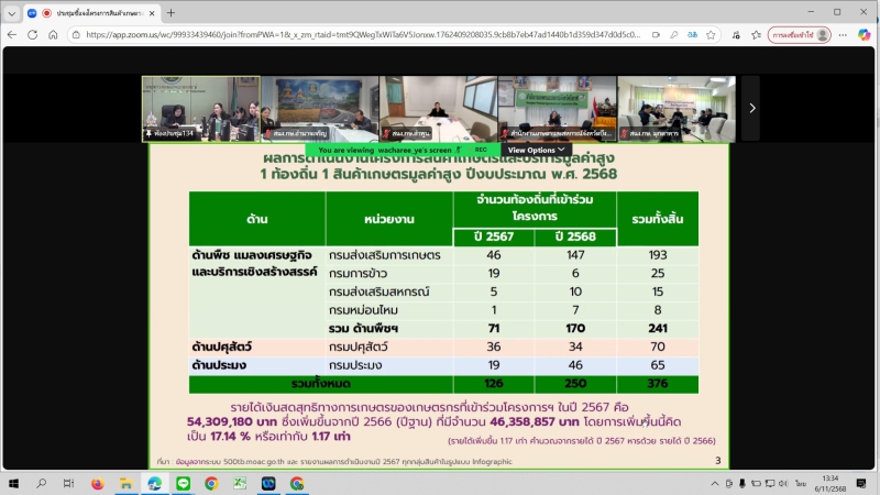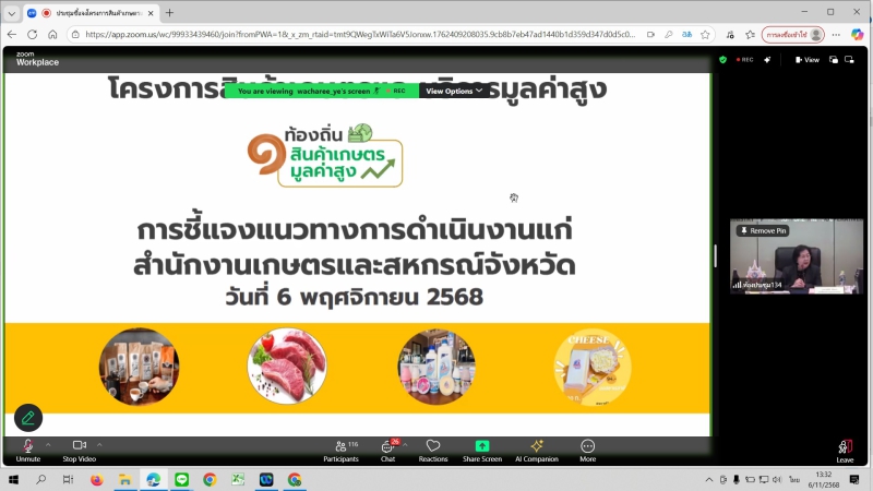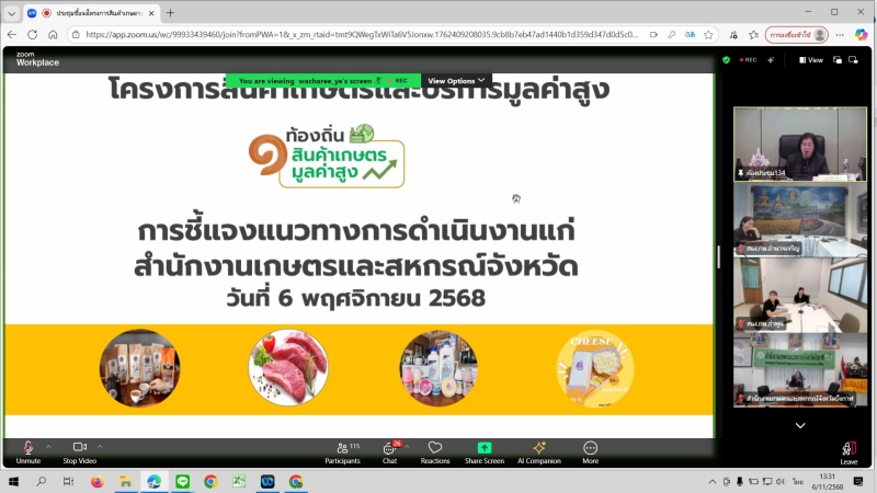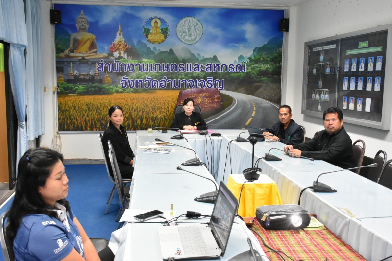 วันพฤหัสบดีที่ 6 พฤศจิกายน 2568 ที่ห้องประชุมสำนักงานเกษตรและสหกรณ์จังหวัดอำนาจเจริญ นางปารีณา สอนอาจ เกษตรและสหกรณ์จังหวัดอำนาจเจริญ พร้อมด้วยนายธวัชชัย นาราษฎร์ หัวหน้ากลุ่มช่วยเหลือเกษตรกรและโครงการพิเศษ นางสาวอุทัยวรรณ เพ็งธรรม นักวิเคราะห์นโยบายและแผนชำนาญการ และเจ้าหน้าที่ที่เกี่ยวข้อง เข้าร่วมการประชุมชี้แจงโครงการสินค้าเกษตรและบริการมูลค่าสูง 1 ท้องถิ่น 1 สินค้าเกษตรมูลค่าสูง และโครงการส่งเสริมและพัฒนาสินค้าเกษตรชีวภาพ (สมุนไพร) ปึงบประมาณ พ.ศ. 2569 ผ่านระบบประชุมทางไกล Zoom Meeting โดยมีนางสาวทัศนีย์ เมืองแก้ว รองปลัดกระทรวงเกษตรและสหกรณ์ เป็นประธานการประชุม นางอมราพร ชีพสมุทร์ ผู้อำนวยการกองนโยบายเทคโนโลยีเพื่อการเกษตรและเกษตรรมยั่งยืน สำนักงานปลัดกระทรวงเกษตรและสหกรณ์ ทำหน้าที่เลขานุการ และมีเจ้าหน้าที่จากสำนักงานเกษตรและสหกรณ์จังหวัดทุกจังหวัดเข้าร่วมรับฟังและแลกเปลี่ยนความคิดเห็น เพื่อสร้างความเข้าใจในแนวทางการดำเนินงาน และขับเคลื่อนการพัฒนาเกษตรกรและสหกรณ์ให้สามารถยกระดับคุณภาพสินค้าเกษตรสู่มาตรฐานและมูลค่าที่สูงขึ้นอย่างยั่งยืน