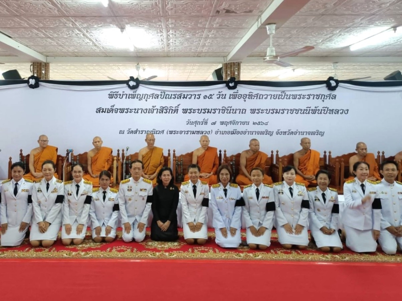วันศุกร์ที่ 7 พฤศจิกายน 2568 เวลา 13.30 น. นางปารีณา สอนอาจ เกษตรและสหกรณ์จังหวัดอำนาจเจริญ เข้าร่วมกิจกรรมเพื่อถวายเป็นพระราชกุศลแค่สมเด็จพระนางเจ้าสิริกิติ์ พระบรมราชินีนาถ พระบรมราชชนนีพันปีหลวง เพื่อน้อมถวายความอาลัยและน้อมสำนึกในพระมหากรุณาธิคุณอันหาที่สุดมิได้ โดยมีนายอนุรัตน์ ธรรมประจำจิต ผู้ว่าราชการจังหวัดอำนาจเจริญ เป็นประธานในพิธี พร้อมด้วยนายเสนีย์ ส้มเขียวหวาน รองผู้ว่าราชการจังหวัดอำนาจเจริญ นายเทพรัตน์ ตันตยานนท์ รองผู้ว่าราชการจังหวัดอำนาจเจริญ นางโสภา ธรรมประจำจิต นายกเหล่ากาชาดจังหวัดอำนาจเจริญ หัวหน้าส่วนราขการ ข้าราชการและเจ้าหน้าที่ภาครัฐ ภาคเอกชน และภาคประชาชน พร้อมใจกันเข้าร่วมพิธี ณ วัดสำราญนิเวศ (พระอารามหลวง) อำเภอเมืองอำนาจเจริญ จังหวัดอำนาจเจริญ