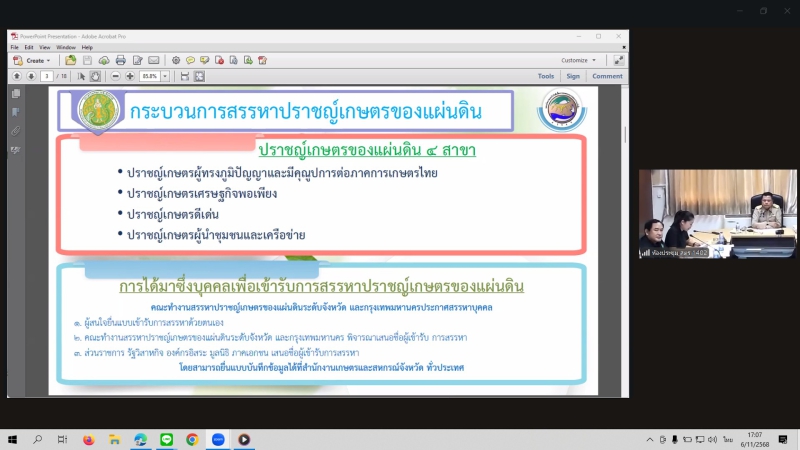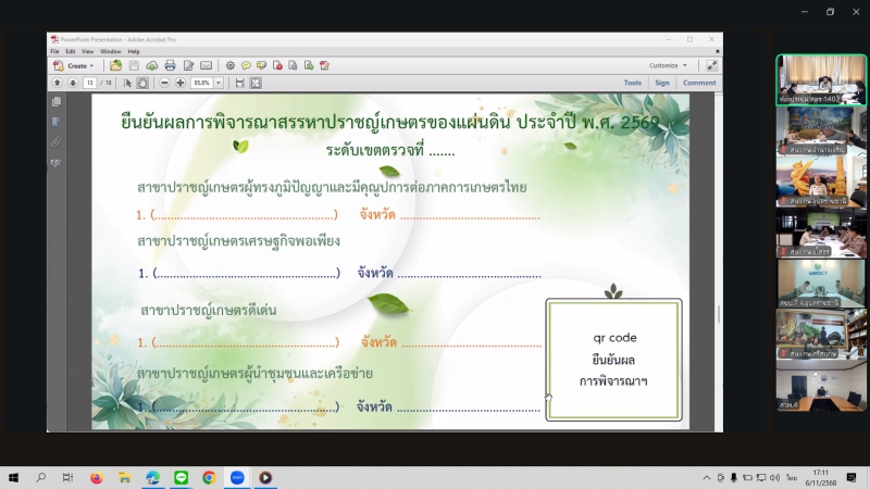 วันจันทร์ที่ 10 พฤศจิกายน 2568 เวลา 09.00 น. นางปารีณา สอนอาจ เกษตรและสหกรณ์จังหวัดอำนาจเจริญ พร้อมด้วยนายธวัชชัย นาราษฎร์ หัวหน้ากลุ่มช่วยเหลือเกษตรกรและโครงการพิเศษ และนายอภิชิต โพธิ์ศรี นักวิเคราะห์นโยบายและแผนชำนาญการ เข้าร่วมการประชุมคณะทำงานสรรหาปราชญ์เกษตรของแผ่นดินระดับเขต เขตตรวจราชการที่ 14 ประจำปี 2569 ผ่านระบบประชุมทางไกลออนไลน์ Zoom Meeting โดยมีนายนายศรัญญู พูลลาภ ผู้ตรวจราชการกระทรวงเกษตรและสหกรณ์ ประธานคณะทำงานสรรหาปราชญ์เกษตรของแผ่นดินระดับเขต เขตตรวจราชการที่ 14 เป็นประธานในการประชุม และมีคณะทำงานฯ เข้าร่วมประชุมเพื่อพิจารณาคัดเลือกบุคคลที่ได้รับการแต่งตั้งเชิดชูเกียรติเป็นปราชญ์เกษตรของแผ่นดิน ตามหลักเกณฑ์และวิธีการสรรหาปราชญ์เกษตรของแผ่นดิน เพื่อนำเสนอต่อคณะอนุกรรมการสรรหาปราชญ์เกษตรของแผ่นดิน เพื่อดำเนินการตามกระบวนการสรรหาที่กำหนดไว้ต่อไว้ต่อไป