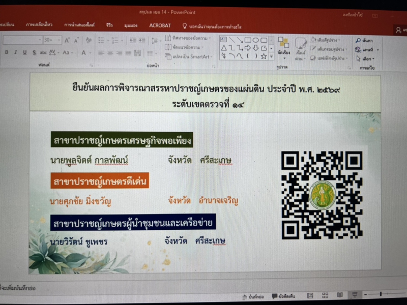 มติที่ประชุมเห็นชอบลงคะแนนให้นายศุภชัย มิ่งขวัญ ผู้สมัครเข้ารับการสรรหาปราชญ์เกษตรของแผ่นดิน สาขาปราชญเกษตรดีเด่น” ของจังหวัดอำนาจเจริญ เป็นตัวแทนเขต 14 ในสาขาดังกล่าว ไปประกวดในระดับประเทศต่อไป