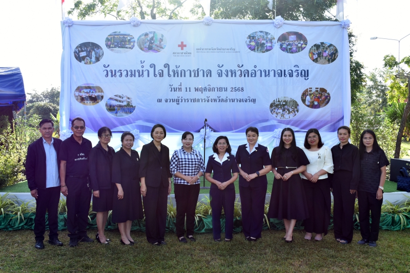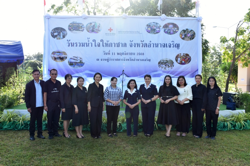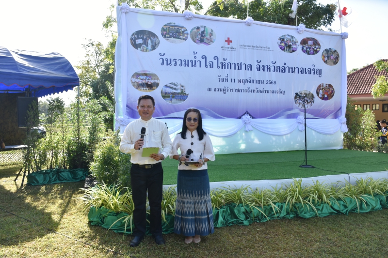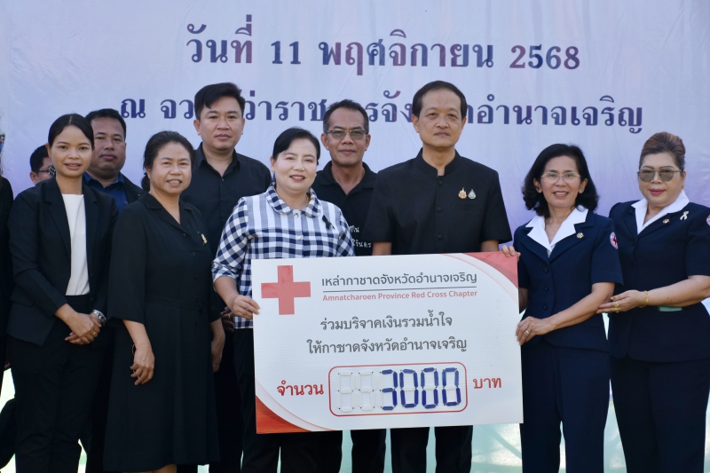 วันอังคารที่ 11 พฤศจิกายน 2568 เวลา 09.30 น. ที่จวนผู้ว่าราชการจังหวัดอำนาจเจริญ นางปารีณา สอนอาจ เกษตรและสหกรณ์จังหวัดอำนาจเจริญ พร้อมด้วยข้าราชการและเจ้าหน้าที่สำนักงานฯ เข้าร่วมงานวันรวมน้ำใจให้กาชาดจังหวัดอำนาจเจริญ ปี 2568 โดยมีนายอนุรัตน์ ธรรมประจำจิต ผู้ว่าราชการจังหวัดอำนาจเจริญ เป็นประธาน นางโสภา ธรรมประจำจิต นายกเหล่ากาชาดจังหวัดอำนาจเจริญ เป็นผู้กล่าวรายงานวัตถุประสงค์ในการจัดงานเพื่อรับบริจาคเงินจากภาครัฐ ภาคเอกชน ผู้มีจิตศรัทธา หารายได้จัดทำงบประมาณรายจ่าย ประจำปีงบประมาณ 2568 ของเหล่ากาชาดจังหวัดอำนาจเจริญ ในการช่วยเหลือ ผู้ประสบสาธารณภัยต่างๆ ผู้ยากไร้ ผู้ด้อยโอกาส และกิจกรรมช่วยเหลือสังคมในพื้นที่จังหวัดอำนาจเจริญในโอกาสต่อไป