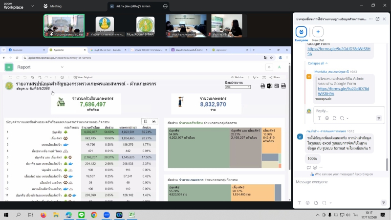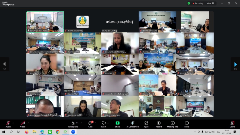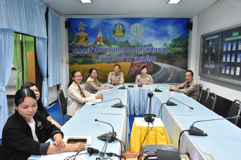 วันจันทร์ที่ 17 พฤศจิกายน 2568 ที่ห้องประชุมสำนักงานเกษตรและสหกรณ์จังหวัดอำนาจเจริญ นางปารีณา สอนอาจ เกษตรและสหกรณ์จังหวัดอำนาจเจริญ พร้อมด้วย นายทินกร เพียภูเขียว ปฏิรูปที่ดินจังหวัดอุบลราชธานี และเจ้าหน้าที่กลุ่มยุทธศาสตร์พัฒนาการเกษตร และกลุ่มสารสนเทศการเกษตร สำนักงานฯ เข้าร่วมประชุมชี้แจงการใช้งานระบบฐานข้อมูลด้านการเกษตรรายจังหวัด (Back-end) ผ่านระบบประชุมทางไกล Zoom Meeting โดยมีนางสาวทัศนีย์ เมืองแก้ว รองปลัดกระทรวงเกษตรและสหกรณ์ เป็นประธานกล่าวเปิดการประชุมและมอบนโยบายแนวทางการใช้งานระบบฐานข้อมูลด้านการเกษตรรายจังหวัด (Back-end) ซึ่งประกอบด้วย ระบบข้อมูลพื้นฐานด้านการเกษตรรายจังหวัด (Provinfo) และระบข้อมูลการบริหารจัดการสินค้าเกษตรที่สำคัญของจังหวัด (Agricenter Product) จากนั้น นายณฤทธิ์ บุญชัย ผู้อำนวยการสำนักแผนงานและโครงการพิเศษ ชี้แจงภาพรวมระบบฐานข้อมูลด้านการเกษตรรายจังหวัด เจ้าหน้าที่สำนักงานแผนงานและโครงการพิเศษ ได้ชี้แจง แนวทางการจัดทำข้อมูลเข้าสู่ ระบบข้อมูลพื้นฐานด้านการเกษตรรายจังหวัด (Provinfo) และระบข้อมูลการบริหารจัดการสินค้าเกษตรที่สำคัญของจังหวัด (Agricenter Product) แนะนำการใช้งาน Dashboard และแนะนำการใช้งานระบบข้อมูลโดยผู้พัฒนาระบบ