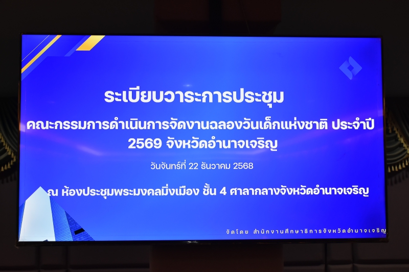 วันจันทร์ที่ 22 ธันวาคม 2568 เวลา 13.30 น. นางปารีณา สอนอาจ เกษตรและสหกรณ์จังหวัดอำนาจเจริญ มอบหมายนางสาวปิยะพร สุริโยตระกูล หัวหน้ากลุ่มสารสนเทศการเกษตร สำนักงานฯ เข้าการประชุมการจัดงานฉลองวันเด็กแห่งชาติ จังหวัดอำนาจเจริญ ประจำปี 2569 โดยมีนายไพรฑูรย์ พรหมสอน รองผู้ว่าราชการจังหวัดอำนาจเจริญ รองผู้ว่าราชการจังหวัดอำนาจเจริญ เป็นประธานในการประชุม และมีบุคลากรภาครัฐ ภาคเอกชน และภาคประชาชน เข้าร่วมประชุม ณ ห้องประชุมพระมงคลมิ่งเมือง ชั้น 4 ศาลากลางจังหวัดอำนาจเจริญ