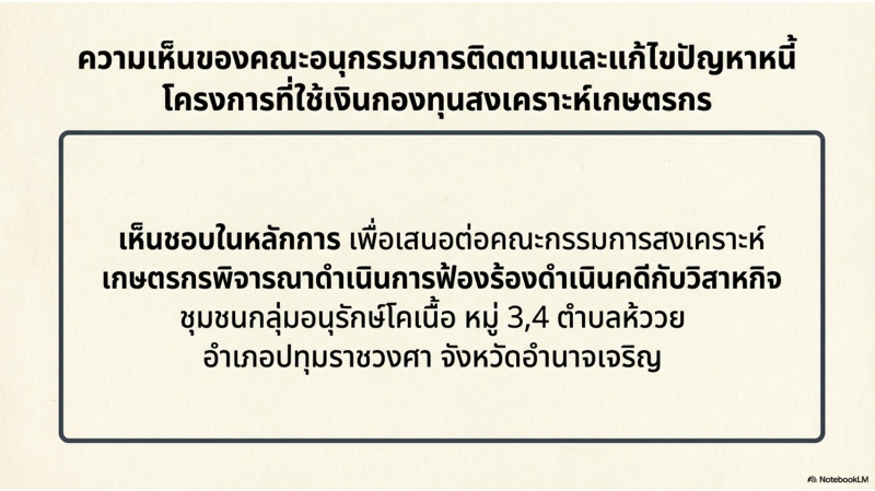 วันศุกร์ 6 มีนาคม พ.ศ. 2569 เวลา 09.00 น. ที่ห้องประชุมสำนักงานเกษตรและสหกรณ์จังหวัดอำนาจเจริญ นางปารีณา สอนอาจ เกษตรและสหกรณ์จังหวัดอำนาจเจริญ พร้อมด้วยนายธวัชชัย นาราษฎร์ หัวหน้ากลุ่มช่วยเหลือเกษตรกรและโครงการพิเศษ และเจ้าหน้าที่กลุ่มช่วยเหลือเกษตรกรและโครงการพิเศษ เข้าร่วมประชุมคณะกรรมการสงเคราะห์เกษตรกร ครั้งที่ 2/2569 ผ่านระบบ Zoom Meeting โดยมีนายอภัย สุทธิสังข์ รองปลัดกระทรวงเกษตรและสหกรณ์ เป็นประธานการประชุม เพื่อพิจารณาอนุมัติให้ดำเนินการฟ้องร้องดำเนินคดีตามกฎหมาย โครงการเลี้ยงโคเนื้อสร้างรายได้ในชุมชน ของวิสาหกิจชุมชนกลุ่มอนุรักษโคเนื้อ หมู่ 3 , 4 ตำบลห้วย อำเภอปทุมราชวงศา จังหวัดอำนาจเจริญ ถ่ายทอดสัญญาณจากห้องประชุมสำนักตรวจราชการกระทรวงเกษตรและสหกรณ์ (135)