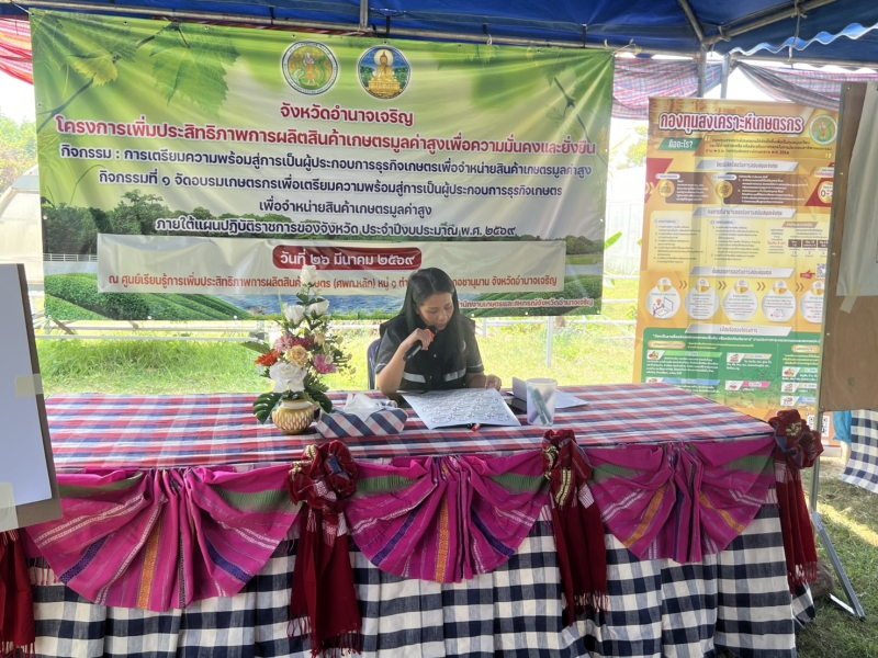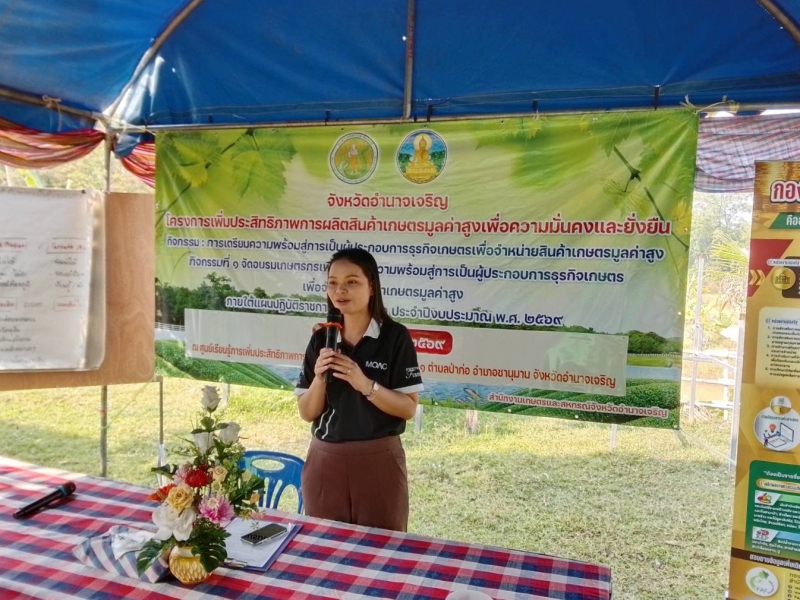 วันพฤหัสบดีที่ 26 มีนาคม 2569 เวลา 08.30 น. นางปารีณา สอนอาจ เกษตรและสหกรณ์จังหวัดอำนาจเจริญ มอบหมายนางสาวอุทัยวรรณ เพ็งธรรม นักวิเคราะห์นโยบายและแผนชำนาญการ และเจ้าหน้าที่กลุ่มยุทธศาสตร์พัฒนาการเกษตร สำนักงานฯ ดำเนินการจัดอบรมเกษตรกรโครงการเพิ่มประสิทธิภาพการผลิตสินค้าเกษตรมูลค่าสูงเพื่อความมั่นคงและยั่งยืน กิจกรรมการเตรียมความพร้อมสู่การเป็นผู้ประกอบการธุรกิจเกษตรเพื่อจำหน่ายสินค้าเกษตรมูลค่าสูง กิจกรรมที่ 1 จัดอบรมเกษตรกรเพื่อเตรียมความพร้อมสู่การเป็นผู้ประกอบการธุรกิจเกษตร เพื่อจำหน่ายสินค้าเกษตรมูลค่าสูง ภายใต้แผนปฏิบัติราชการของจังหวัด ประจำปีงบประมาณ พ.ศ. 2569 “รุ่นที่ 5” โดยมีนายอิทธิโชติ ทองน้อย และเกษตรกรเป้าหมาย จำนวน 50 ราย เข้าร่วมอบรม ณ ศูนย์เรียนรู้การเพิ่มประสิทธิภาพการผลิตสินค้าเกษตร (ศพก.หลัก) หมู่ 1 บ้านป่าก่อ ตำบลป่าก่อ อำเภอชานุมาน จังหวัดอำนาจเจริญ