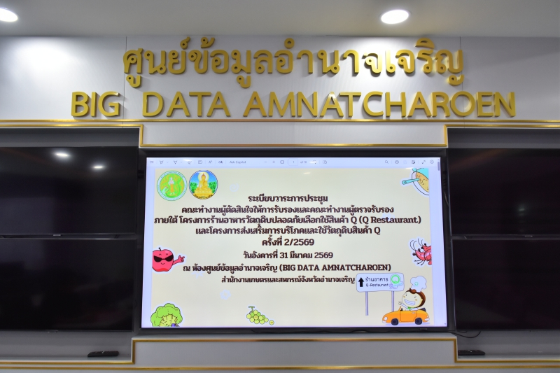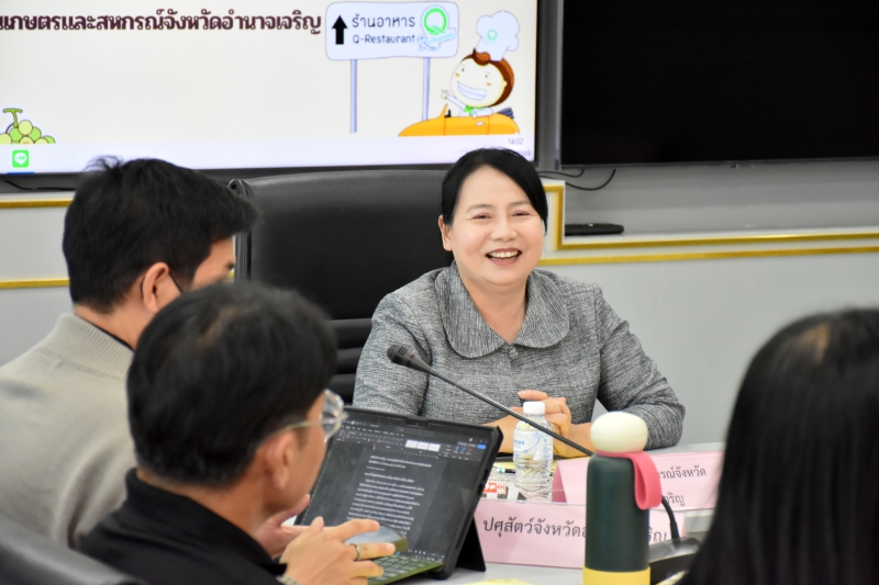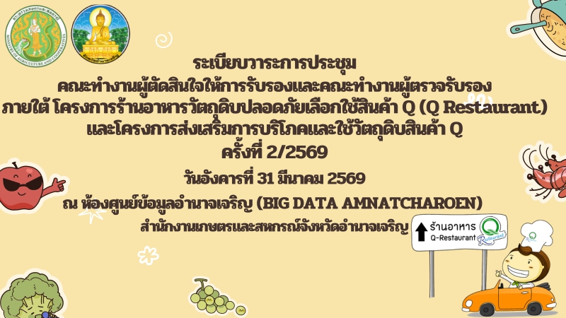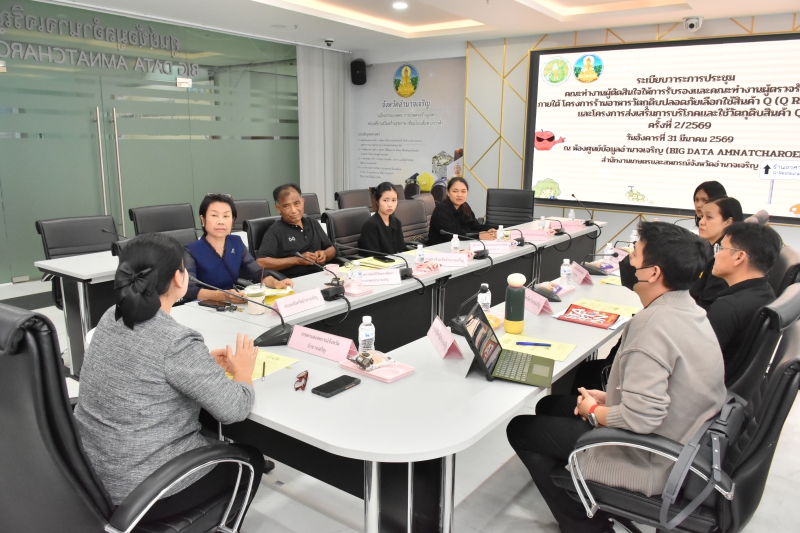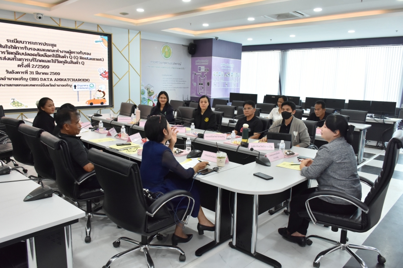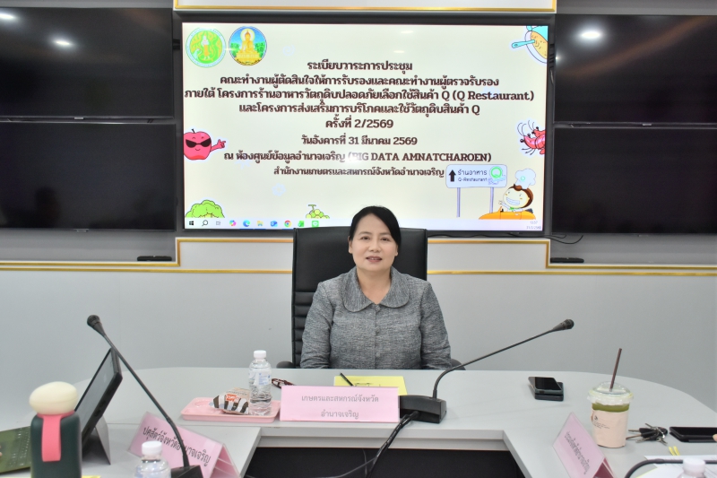 วันอังคารที่ 31 มีนาคม พ.ศ. 2569 เวลา 14.00 น. นางปารีณา สอนอาจ เกษตรและสหกรณ์จังหวัดอำนาจเจริญ เป็นประธานการประชุมคณะทำงานผู้ตัดสินใจให้การรับรองและคณะทำงานผู้ตรวจรับรอง ภายใต้ โครงการร้านอาหารวัตถุดิบปลอดภัยเลือกใช้สินค้า Q (Q Restaurant) และโครงการส่งเสริมการบริโภคและใช้วัตถุดิบสินค้า Q ครั้งที่ 2/2569 โดยมีนายธวัชชัย นาราษฎร์ หัวหน้ากลุ่มยุทธศาสตร์พัฒนาการเกษตร ทำหน้าที่เลขานุการ นางสาวศศิธร สุวรรณกูฏ นักวิเคราะห์นโยบายและแผนชำนาญการ กลุ่มยุทธศาสตร์พัฒนาการเกษตร ทำหน้าที่ผู้ช่วยเลขานุการ และมีคณะทำงานฯ เข้าร่วมประชุม ณ ห้องศูนย์ข้อมูลอำนาจเจริญ (BIG DATA AMNATCHAROEN) ชั้น 3 ศาลากลางจังหวัดอำนาจเจริญ