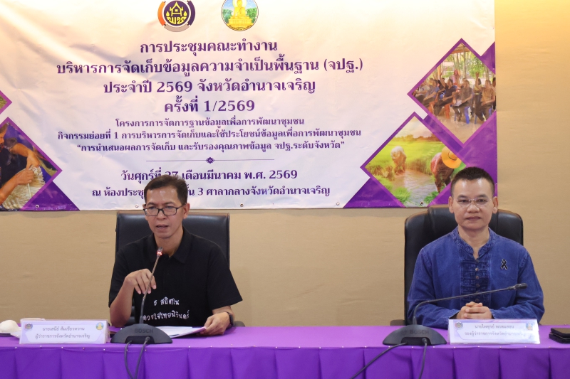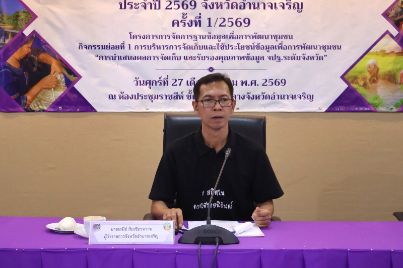 วันศุกร์ที่ 27 มีนาคม 2569 เวลา 09.00 น. นางปารีณา สอนอาจ เกษตรและสหกรณ์จังหวัดอำนาจเจริญร่วมการประชุมนำเสนอผลการจัดเก็บข้อมูล และรับรองคุณภาพข้อมูล จปฐ. ระดับจังหวัด การดำเนินงานผลการจัดเก็บและบันทึกข้อมูลความจำเป็นพื้นฐาน (จปฐ.) ปี 2569 ตัวชี้วัดและหน่วยงานที่รับผิดชอบ และแนวทางการตรวจสอบข้อมูล จปฐ.ปี 2569 เพื่อการรับรองคุณภาพข้อมูลความจำเป็นพื้นฐาน (จปฐ.) ปี 2569 และร่วมการประชุมคณะกรรมการบริหารศูนย์อำนวยการขจัดความยากและพัฒนาคนทุกช่วงวัยเพื่อพิจารณาชี้เป้าให้ความช่วยเหลือครัวเรือนเป้าหมายตามระบบ TPMAP Logbook และครัวเรือนตกหล่นเพิ่มเติม ปีงบประมาณ พ.ศ. 2569 ณ ห้องประชุมราชสีห์ ชั้น 3 ศาลากลางจังหวัดอำนาจเจริญ โดยมีนายเสนีย์ ส้มเขียวหวาน ผู้ว่าราชการจังหวัดอำนาจเจริญ เป็นประธาน พร้อมด้วย นายไพฑูรย์ พรหมสอน รองผู้ว่าราชการจังหวัดอำนาจเจริญ และคณะกรรมการร่วมการประชุมในครั้งนี้