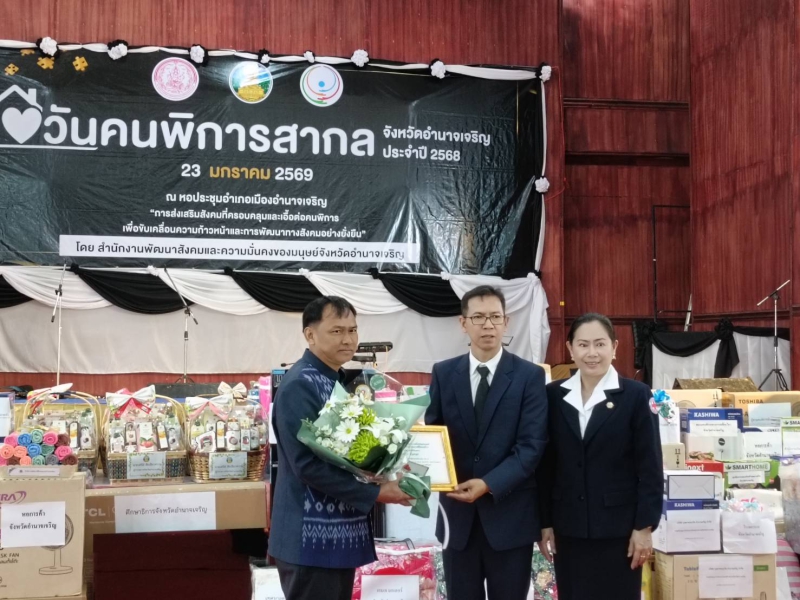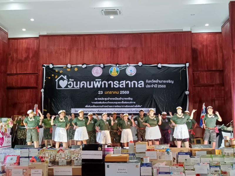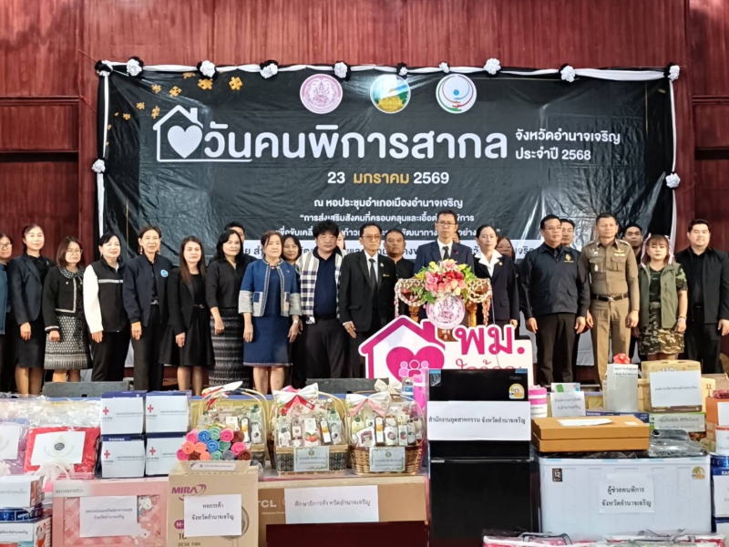 งานวันคนพิการสากลจังหวัดอำนาจเจริญ ประจำปี 2569 ภายใต้แนวคิด "การส่งเสริมสังคมที่ครอบคลุมและเอื้อต่อคนพิการ เพื่อขับเคลื่อนความก้าวหน้าและการพัฒนาทางสังคมอย่างยั่งยืน""Fostering disability inclusive societies for advancing socialprogress" โดยมีกิจกรรมต่าง ๆ อาทิเช่น การมอบเกียรติบัตรเช็ดชูเกียรติผู้นำคนพิการที่สร้างแรงบันดาลใจ TOP 10 การมอบช่อดอกไม้แด่คนพิการต้นแบบจังหวัดอำนาจเจริญ องค์กรด้านคนพิการที่ให้บริการแก่คนพิการที่ได้รับรองมาตรฐานฯ (มอพ.2554) ระดับดีมาก การมอบรถโยกสำหรับคนพิการ การแสดงความสามารถของคนพิการ การแสดงนิทรรศการรวมถึงผลงานและผลิตภัณฑ์ของคนพิการ การจับฉลากมอบของขวัญแก่คนพิการ การมอบของที่ระลึก กลุ่มเป้าหมายประกอบด้วย คนพิการทุกประเภทในจังหวัดอำนาจเจริญ ผู้ดูแลคนพิการ อาสาสมัคร เครือข่ายด้านคนพิการ ผู้แทนจากหน่วยงานภาครัฐ และเจ้าหน้าที่ที่เกี่ยวข้อง รวม 570 คน