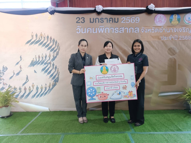 วันศุกร์ 23 มกราคม 2569 นางปารีณา สอนอาจ เกษตรและสหกรณ์จังหวัดอำนาจเจริญ ร่วมเป็นเกียรติและร่วมสนับสนุนสิ่งของในงานวันคนพิการสากลจังหวัดอำนาจเจริญ ประจำปี 2569 โดยมีนายเสนีย์ ส้มเขียวหวาน ผู้ว่าราชการจังหวัดอำนาจเจริญ เป็นประธานในพิธี พร้อมด้วยนางผุสณีย์ ส้มเขียวหวาน นายกเหล่ากาชาดจังหวัดอำนาจเจริญ นายวิศิษฐ์ ผลดก พัฒนาสังคมและความมั่นคงของมนุษย์จังหวัดอำนาจเจริญ เป็นผู้กล่าวรายงานวัตถุประสงค์ในการจัดงาน และมีส่วนราชการ ภาคเอกชน ภาคประชาชน และผู้พิการในจังหวัดอำนาจเจริญ เข้าร่วมงาน ณ หอประชุมอำเภอเมืองอำนาจเจริญ จังหวัดอำนาจเจริญ