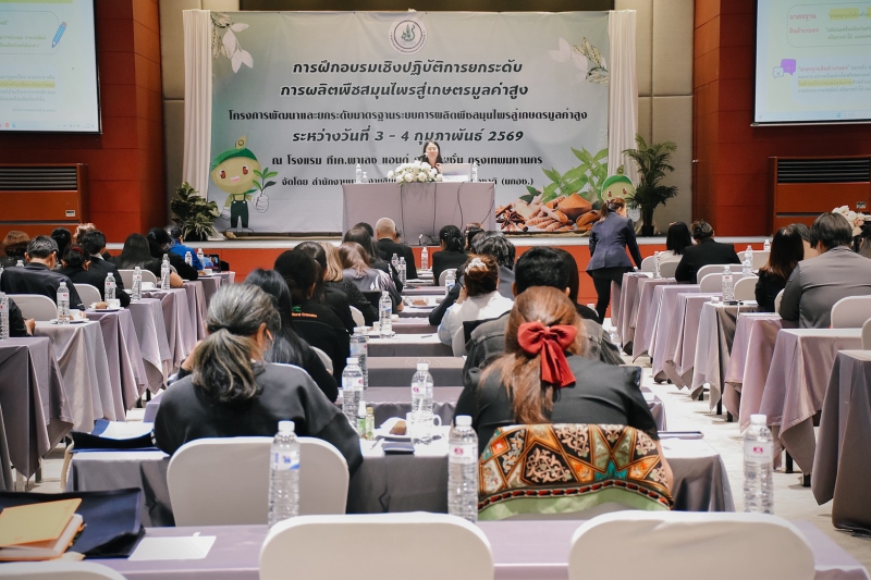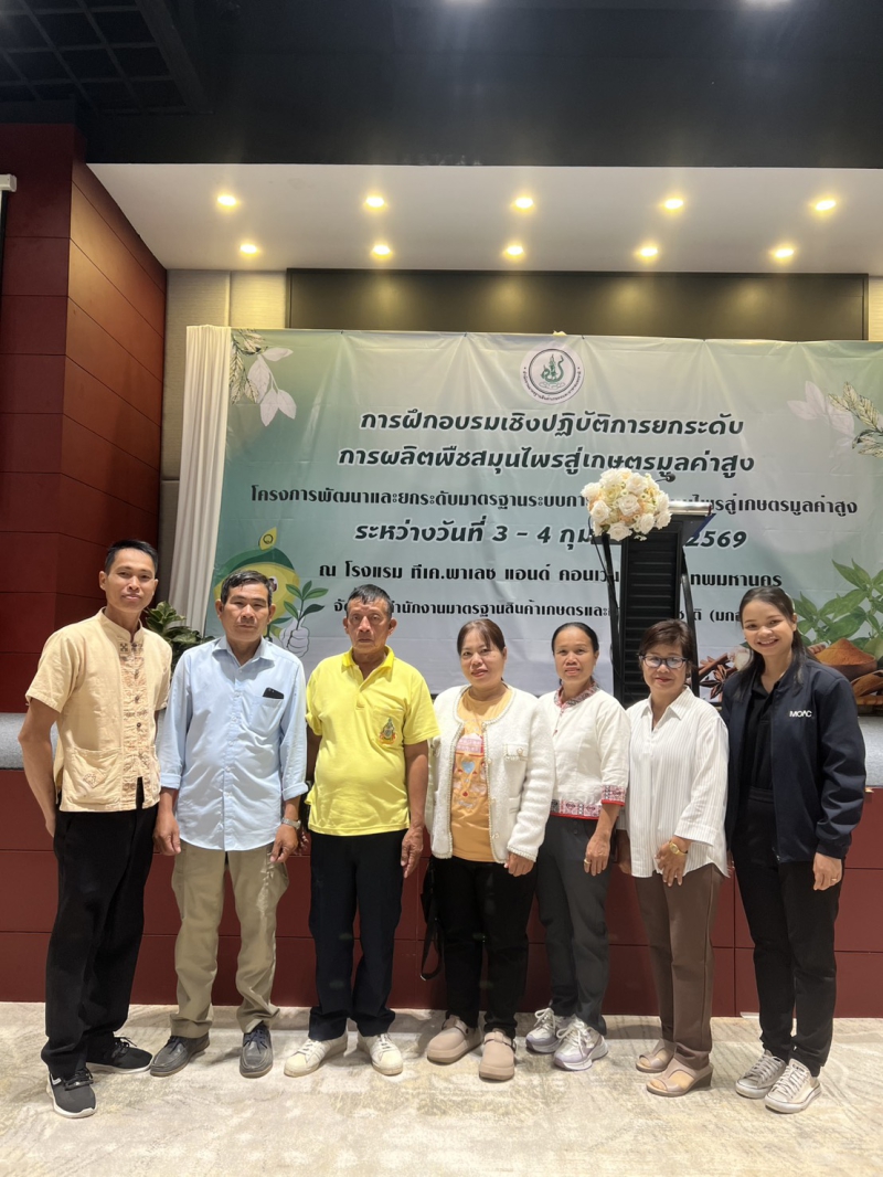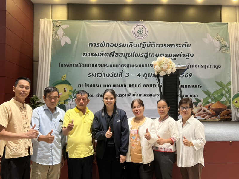 นางปารีณา สอนอาจ เกษตรและสหกรณ์จังหวัดอำนาจเจริญ มอบหมายให้นางสาวอุทัยวรรณ เพ็งธรรม นักวิเคราะห์นโยบายและแผนชำนาญการ เข้าร่วมฝึกอบรมเชิงปฏิบัติการยกระดับการผลิตพืชสมุนไพรสู่เกษตรมูลค่าสูง โครงการพัฒนาและยกระดับมาตรฐานระบบการผลิตพืชสมุนไพรสู่เกษตรมูลค่าสูง พร้อมด้วยเกษตรกรกลุ่มแปลงใหญ่พืชผัก/สมุนไพร ตำบลป่าก่อ อำเภอชานุมาน จังหวัดอำนาจเจริญ จำนวน 6 ราย ซึ่งจัดขึ้นระหว่างวันที่ 3-4 กุมภาพันธ์ 2569 โดยมี นางสาวกุลพิพิทย์ จันทร์บวย ผู้อำนวยการกองพัฒนาศักยภาพด้านการมาตรฐาน สำนักงานมาตรฐานสินค้าเกษตรและอาหารแห่งชาติ เป็นประธานในพิธีเปิด วัตถุประสงค์เพื่อพัฒนาเกษตรกร/กลุ่มเกษตรกร ที่มีการผลิตพืชสมุนไพร ให้มีความรู้ ความเข้าใจมาตรฐานพืชสมุนไพรตลอดห่วงโซ่ สามารถนำไปปฏิบัติได้อย่างถูกต้อง และยกระดับสถานประกอบการด้านพืชสมุนไพร ให้มีความสอดคล้องเป็นไปตามมาตรฐาน GMP มีเจ้าหน้าที่และเกษตรกร เข้าร่วมจำนวน 120 ราย ณ โรงแรม ทีเค.พาเลซ แอนด์ คอนเวนชั่น กรุงเทพมหานคร และศึกษาดูงาน การพัฒนาการผลิตภัณฑ์สมุนไพรและแปรรูปสินค้าเกษตร ณ กลุ่มวิสาหกิจชุมชน Thai herb center จังหวัดนนทบุรี