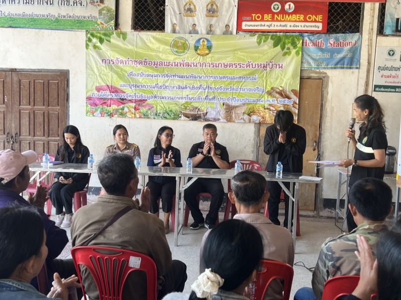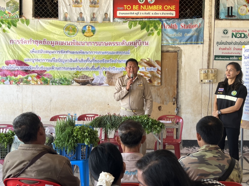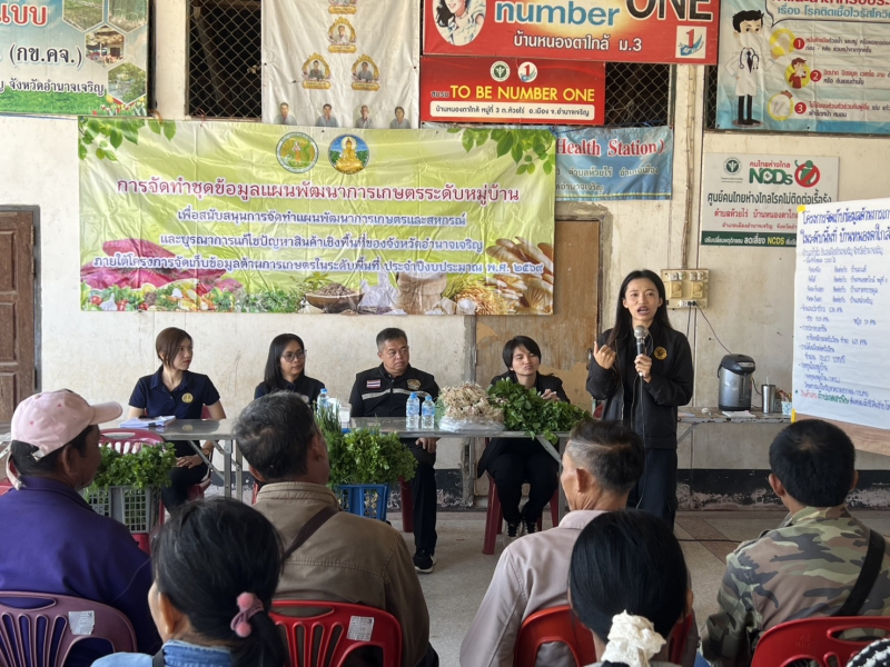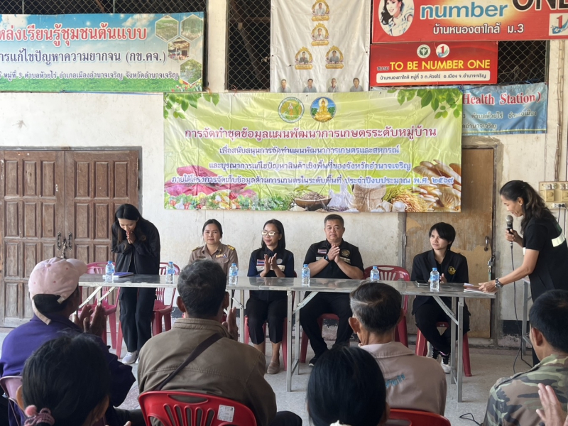 วันจันทร์ที่ 2 กุมภาพันธ์ 2569 นางปารีณา สอนอาจ เกษตรและสหกรณ์จังหวัดอำนาจเจริญ มอบหมายให้นางสาวศศิธร สุวรรณกูฏ นักวิเคราะห์นโยบายและแผนชำนาญการ และเจ้าหน้าที่กลุ่มยุทธศาสตร์ ลงพื้นที่เพื่อให้การจัดทำชุดข้อมูลแผนพัฒนาการเกษตรระดับหมู่บ้าน ภายใต้โครงการจัดเก็บข้อมูลด้านการเกษตรในระดับพื้นที่ เป็นไปด้วยความเรียบร้อย ครบถ้วน ครอบคลุมทุกมิติ สำนักงานเกษตรและสหกรณ์จังหวัดอำนาจเจริญ ได้ร่วมบูรณาการกับหน่วยงานในสังกัดกระทรวงเกษตรและสหกรณ์และหน่วยงานภาคี โดยได้เชิญผู้ช่วยผู้ใหญ่บ้าน ผู้นำชุมชน กรรมการหมู่บ้านอาสาสมัครเกษตรหมู่บ้าน เกษตรกร และประชาชนผู้สนใจ เข้าร่วมจัดทำชุดข้อมูลแผนพัฒนาการเกษตรระดับหมู่บ้าน วันจันทร์ที่ 2 กุมภาพันธ์ 2569 ณ ศาลาประชาคมบ้านหนองตาใกล้ หมู่ 3 ตำบลห้วยไร่อำเภอเมืองอำนาจเจริญ จังหวัดอำนาจเจริญ