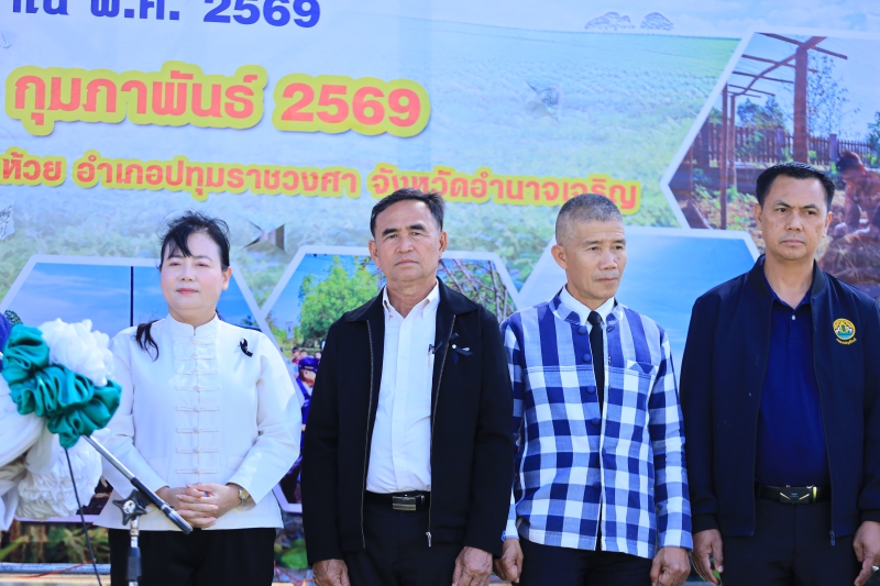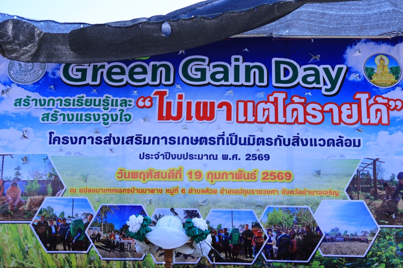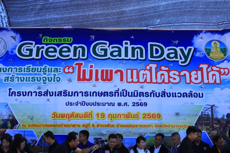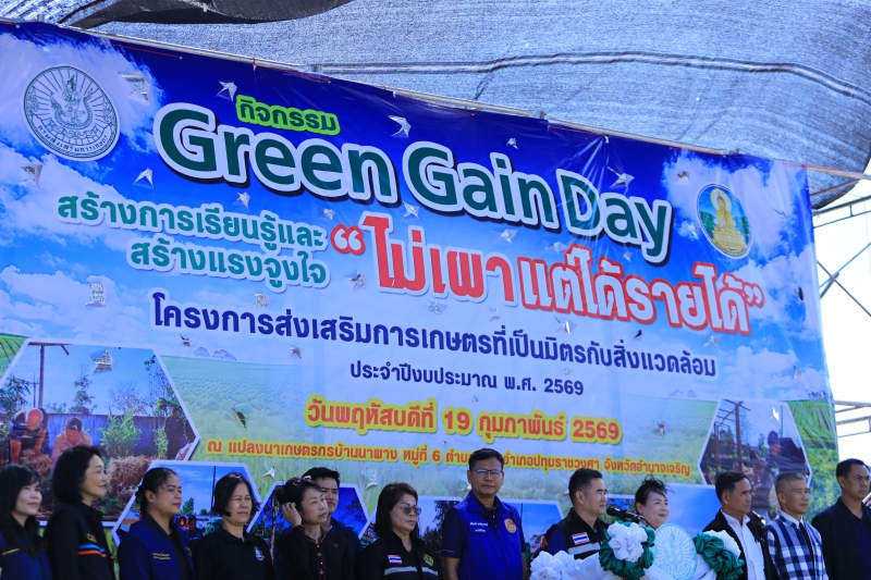 วันพฤหัสบดีที่ 19 กุมภาพันธ์ 2569 เวลา 08.30 น. นางปารีณา สอนอาจ เกษตรและสหกรณ์จังหวัดอำนาจเจริญ ร่วมเป็นเกียรติในพิธีเปิดกิจกรรม "Green Gain Day" สร้างการเรียนรู้และสร้างแรงจูงใจ "ไม่เผาแต่ได้รายได้" โครงการส่งเสริมการเกษตรที่เป็นมิตรกับสิ่งแวดล้อม ประจำปีงบประมาณ พ.ศ. 2569 โดยมีนายกมล โสพัฒน์ ผู้อำนวยการสำนักงานส่งเสริมและพัฒนาการเกษตรที่ 4 จังหวัดขอนแก่น เป็นประธาน นายอธิพงศ์ พงษ์สุวรรณ์ นายอำเภอปทุมราชวงศา เป็นผู้กล่าวต้อนรับ นายไพศาล แก้วบุตรดี เกษตรจังหวัดอำนาจเจริญ เป็นผู้กล่าวรายงาน ด้วยจังหวัดอำนาจเจริญ โดยสำนักงานเกษตรจังหวัดอำนาจเจริญ กำหนดจัดกิจกรรม"Green Gain Day" สร้างการเรียนรู้และสร้างแรงจูงใจ "ไม่เผาแต่ได้รายได้" โครงการส่งเสริมการเกษตรที่เป็นมิตรกับสิ่งแวดล้อม ประจำปีงบประมาณ พ.ศ. 2569 ให้กับเกษตรกรเป้าหมาย จำนวน 200 ราย ณ แปลงมาเกษตรกรบ้านนาผาผาง หมู่ 6 ตำบลห้วย อำเภอปทุมราชวงศา จังหวัดอำนาจเจริญ วัตถุประสงค์เพื่อสร้างการตระหนักรู้การลดการเผาในพื้นที่การเกษตร เสริมสร้างการมีส่วนร่วมของเกษตรกรและชุมชนในการบริหารจัดการพื้นที่และแก้ไขปัญหาการเผาในพื้นที่การเกษตร สร้างรายได้และมูลค่าเพิ่มจากวัสดุเหลือใช้ทางการเกษตรในการทำการเกษตรที่เป็นมิตรกับสิ่งแวดล้อมพร้อมทั้งเป็นการสร้างขวัญและกำลังใจให้แก่เกษตรกรในพื้นที่