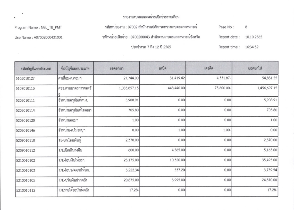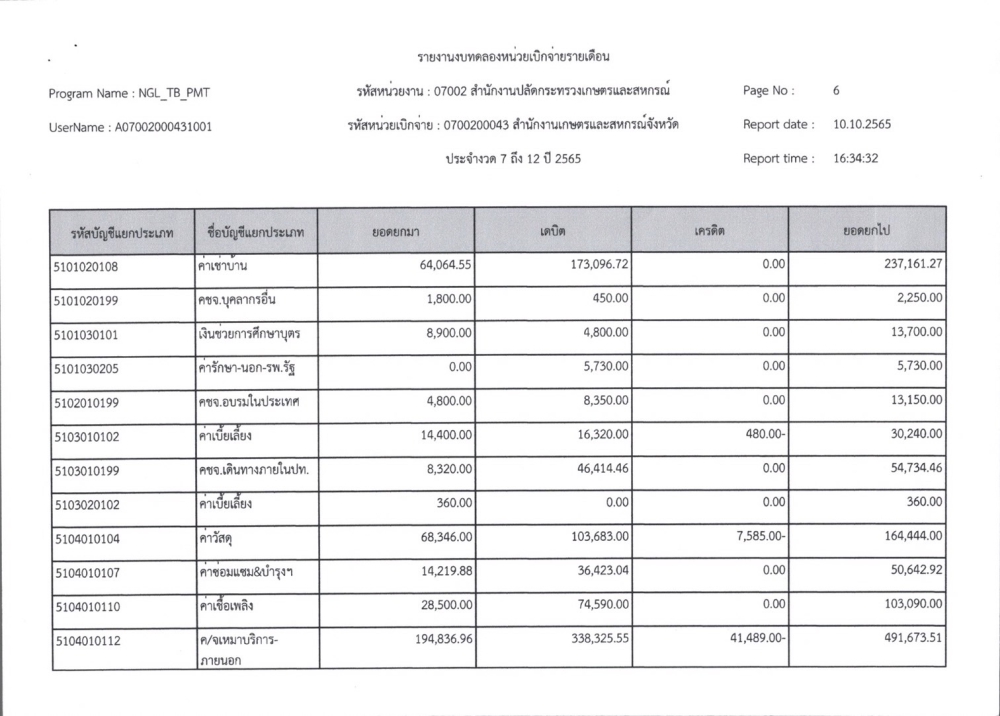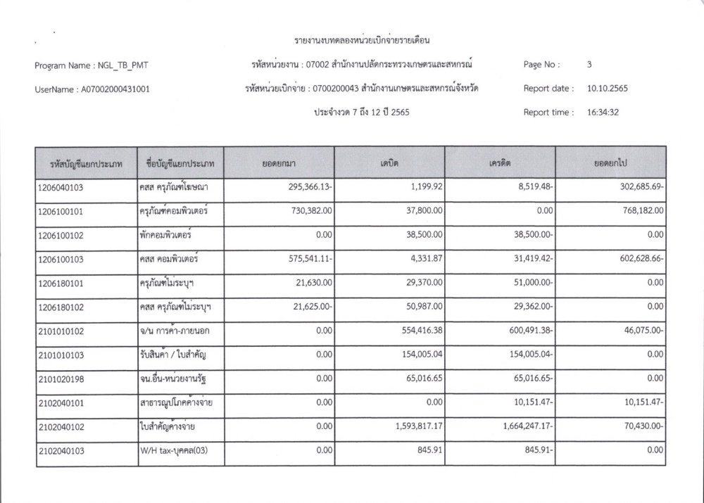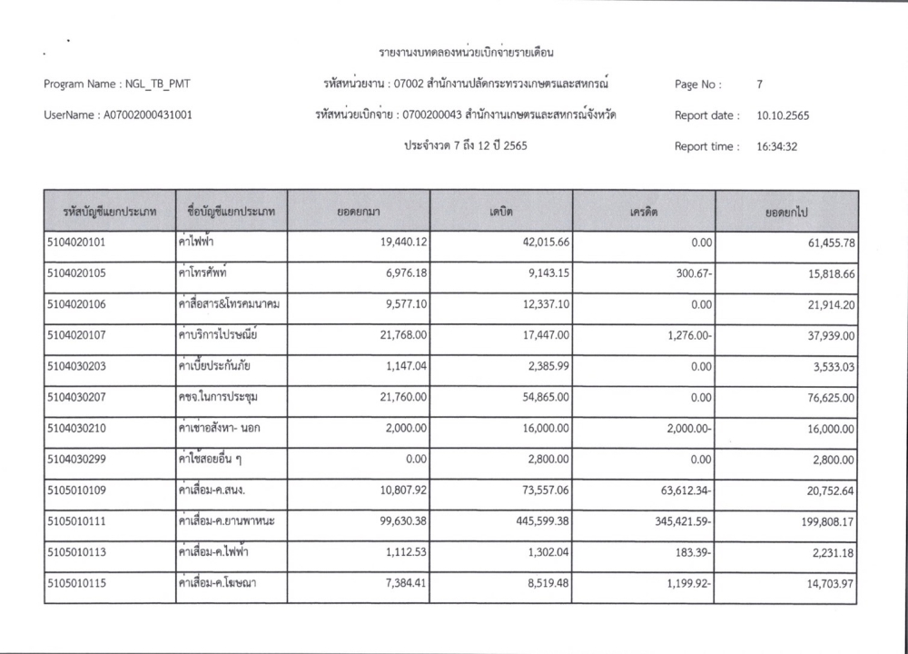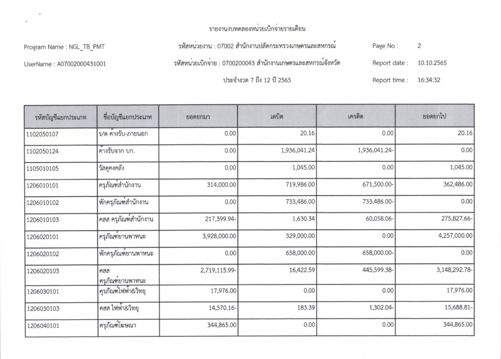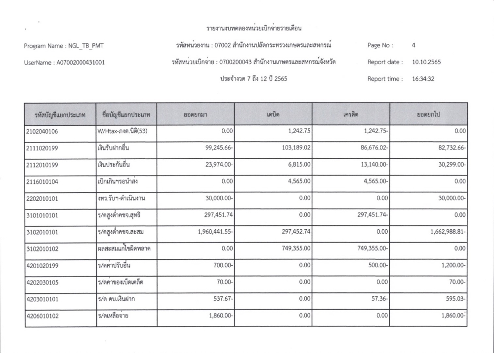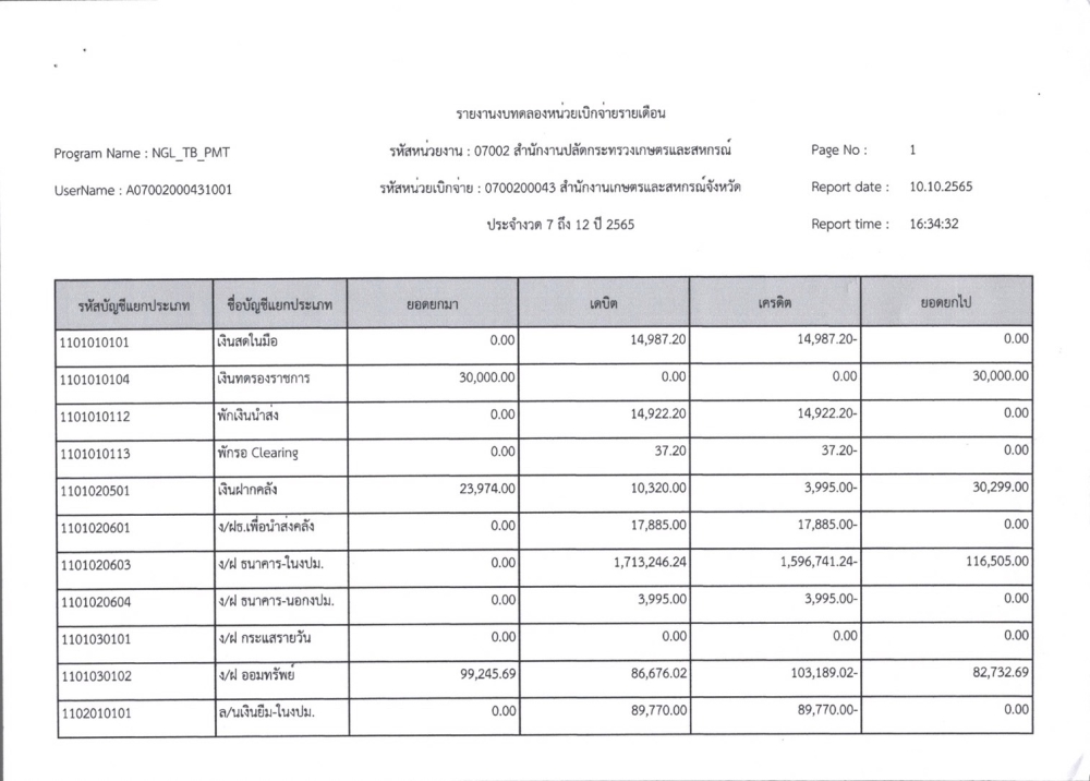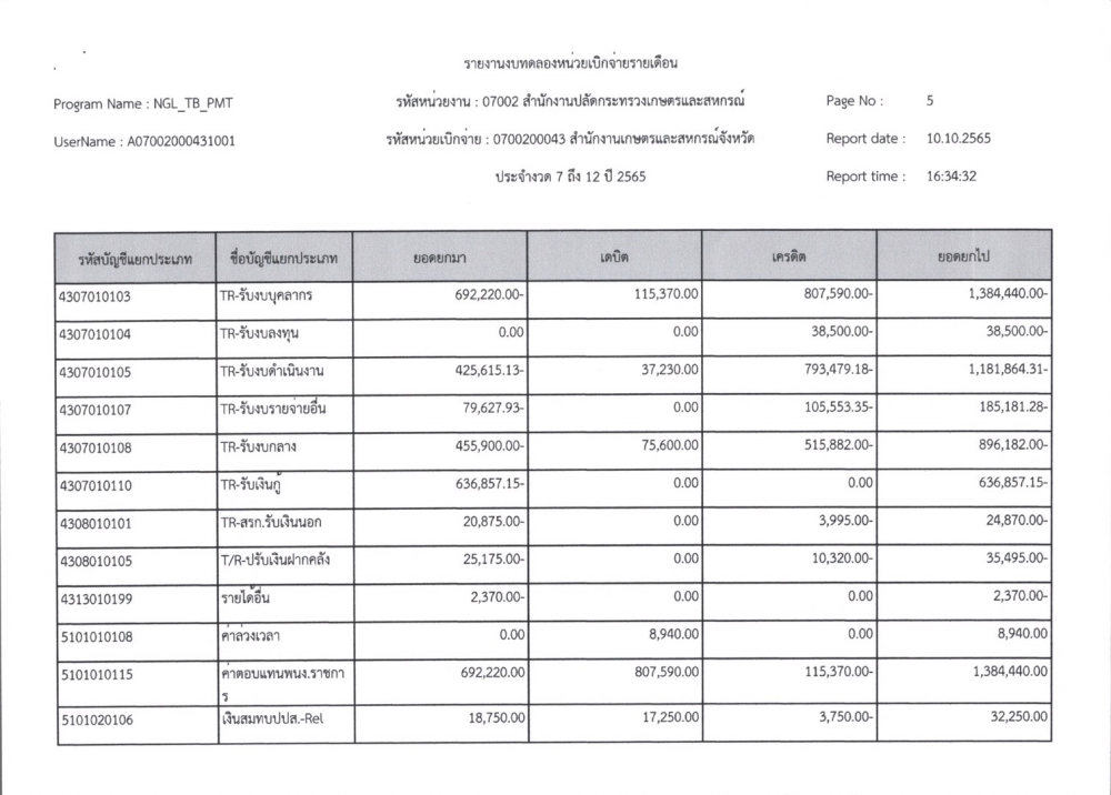 รายงานงบทดลองเบิกจ่ายรายเดือน ปีงบประมาณ พ.ศ. 2565