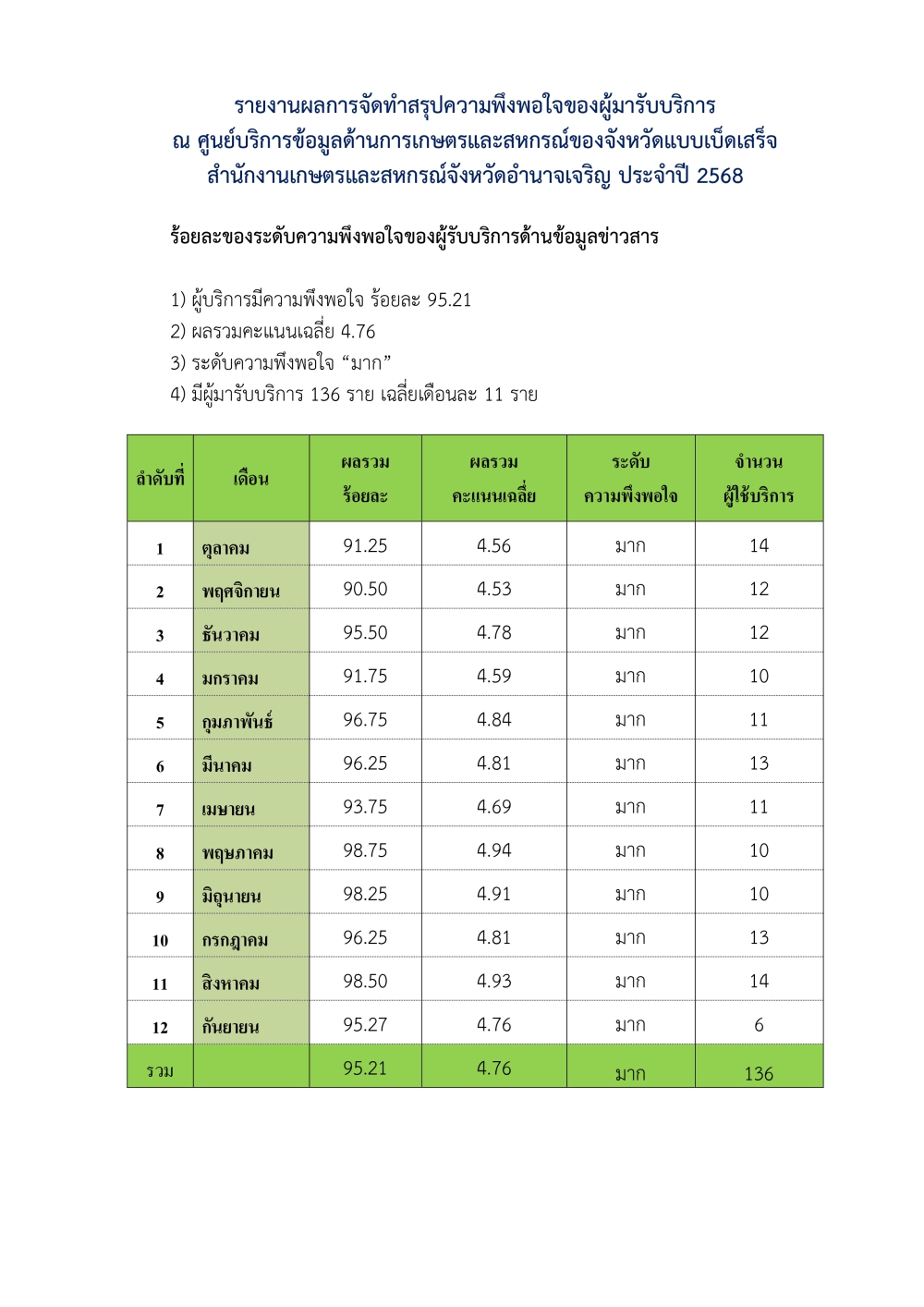 1) ผู้บริการมีความพึงพอใจ ร้อยละ 95.21