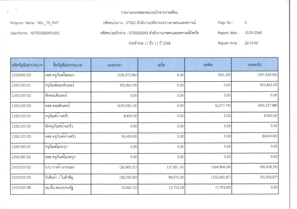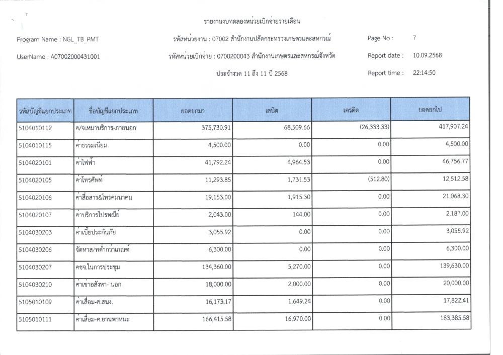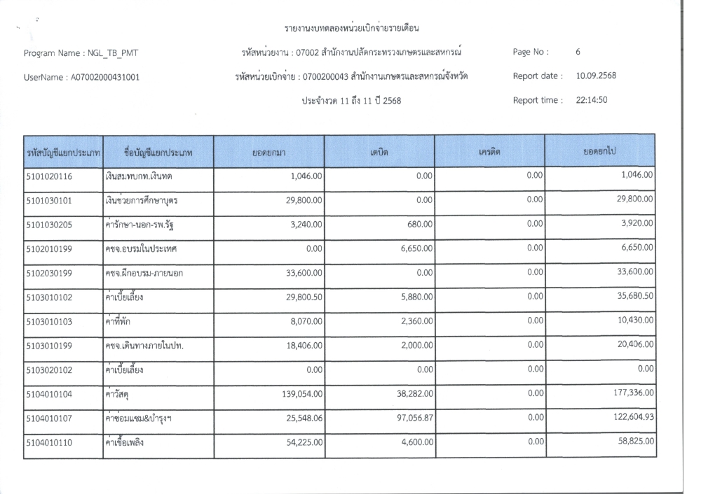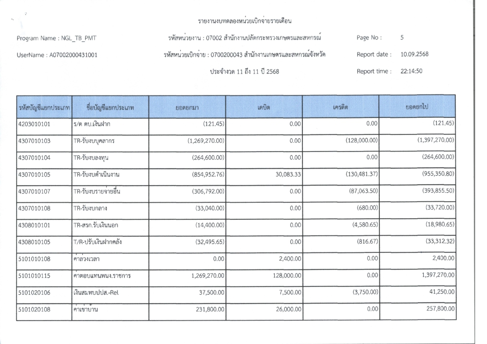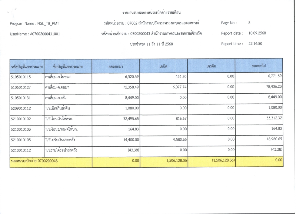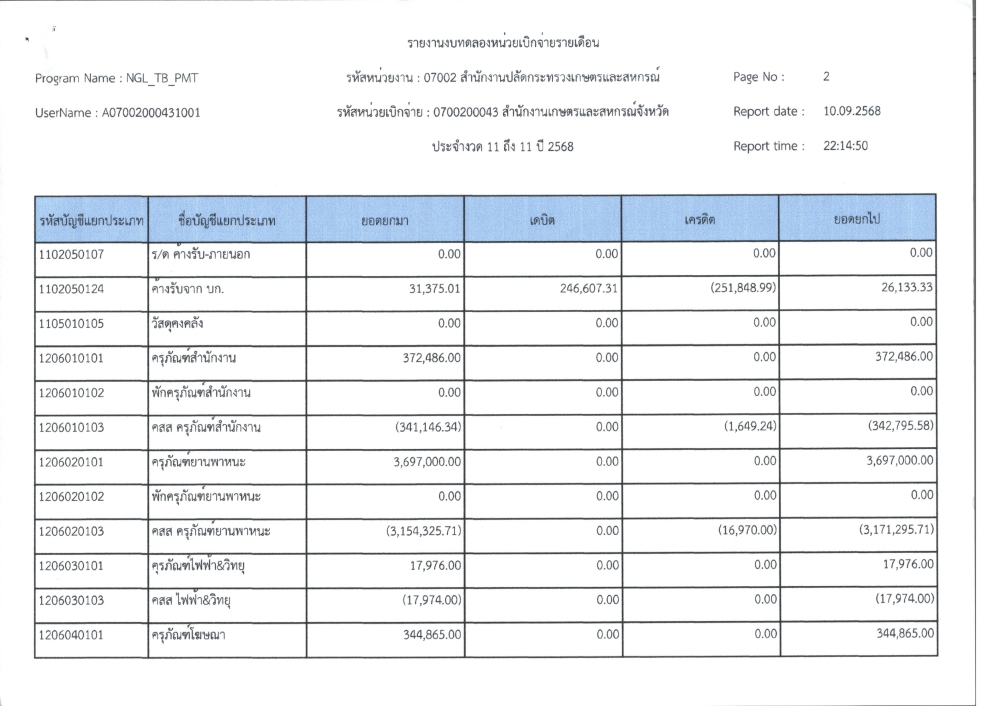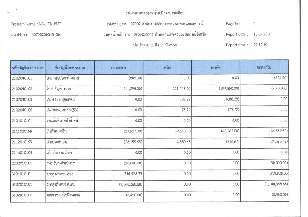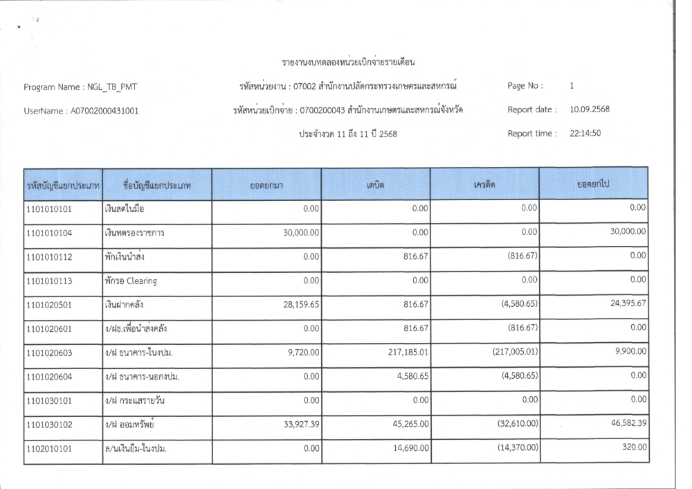 รายงานงบทดลอง เดือนสิงหาคม 2568