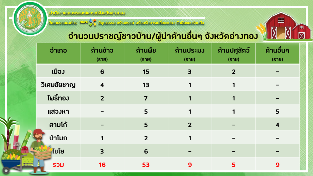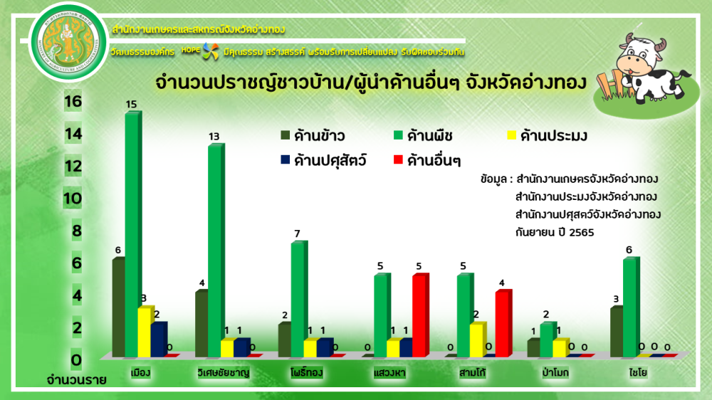 จำนวนปราชญ์ชาวบ้าน/ผู้นำด้านการเกษตร จังหวัดอ่างทอง ปี 2565