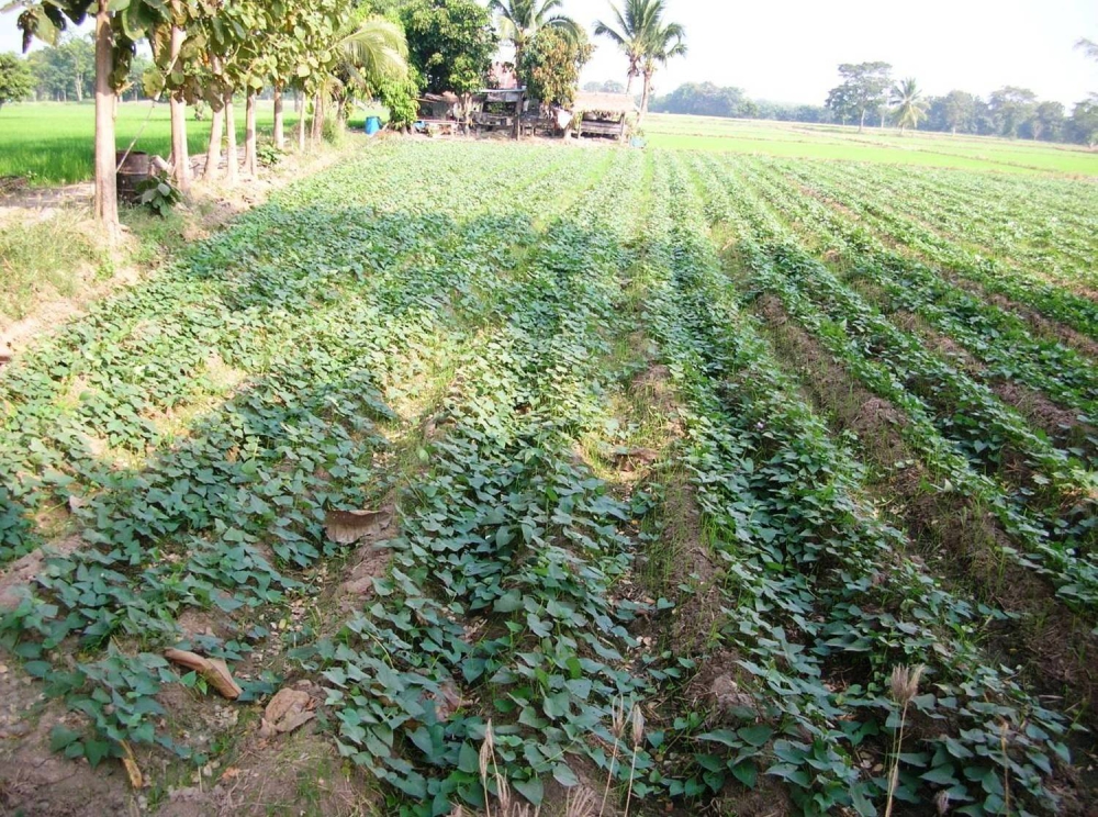 ขั้นตอนที่ 1 การเลือกพื้นที่และพันธุ์มันเทศ ( 3 - 4 สัปดาห์ก่อนปลูก )