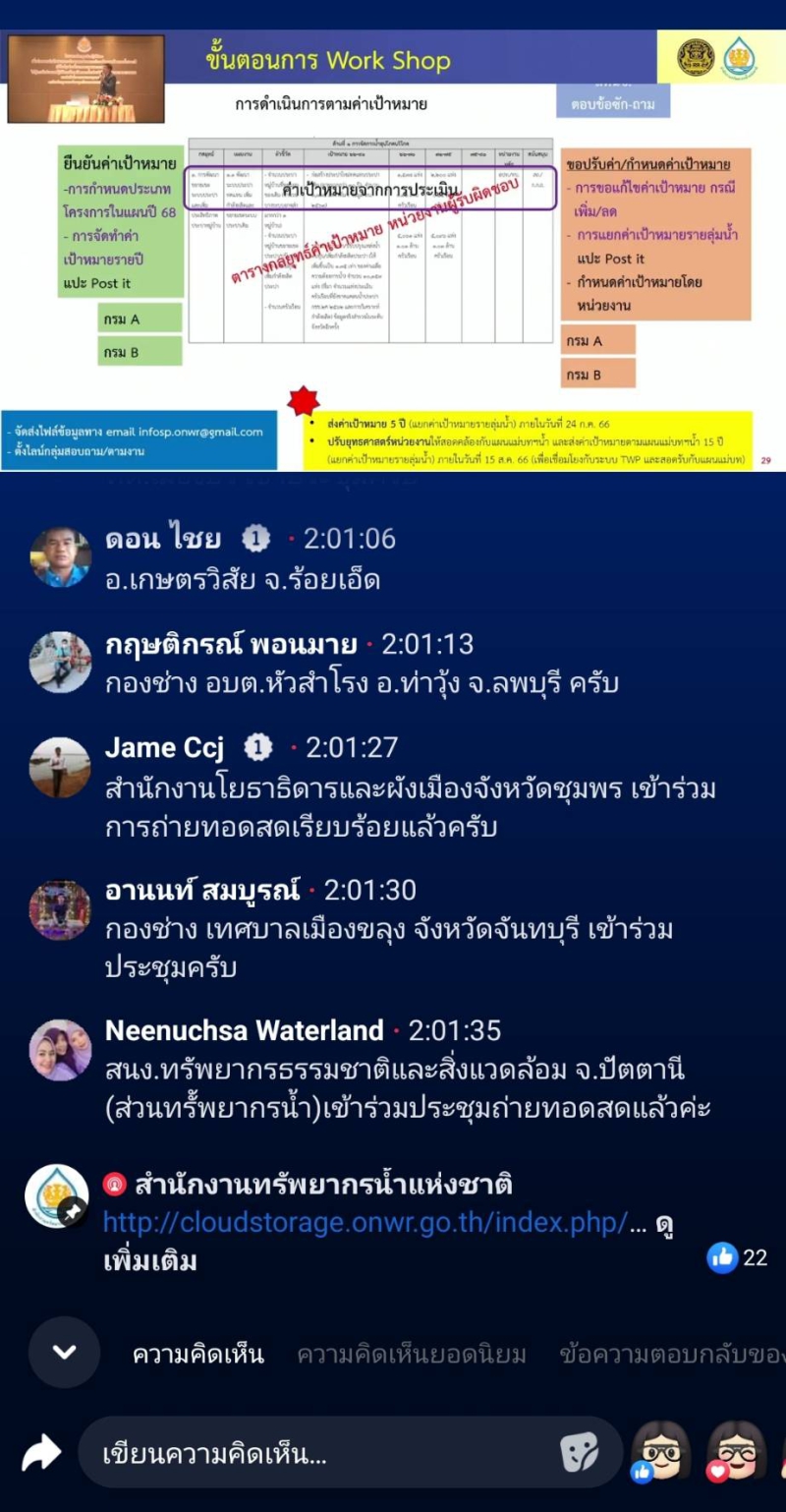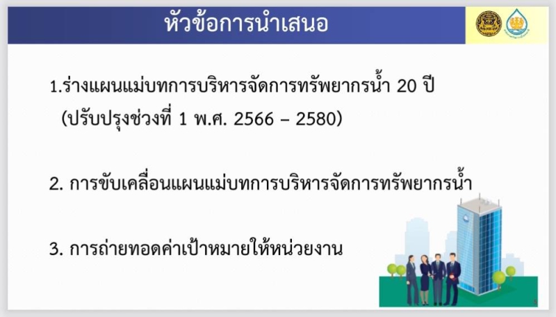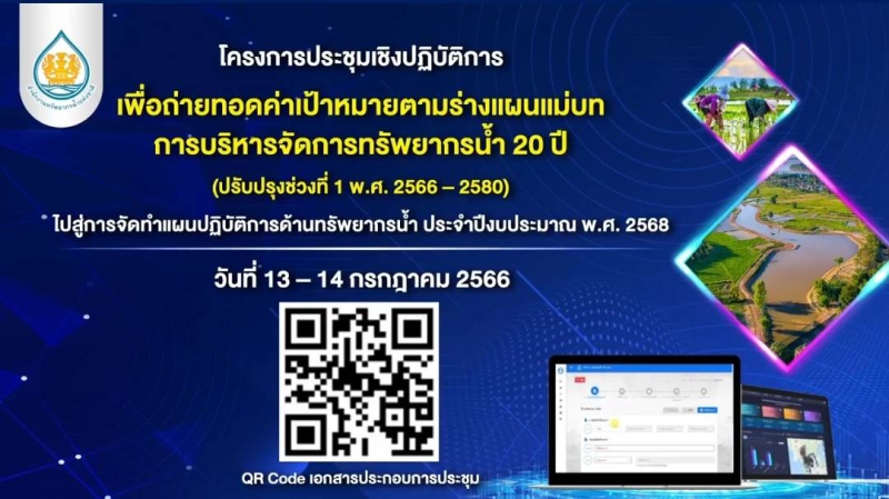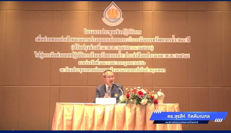 ประชุมเชิงปฏิบัติการเพื่อถ่ายทอดค่าเป้าหมายตามร่างแผนแม่บทการบริหารจัดการทรัพยากรน้ำ 20 ปี (ปรับปรุงช่วงที่ 1 พ.ศ.2566-2580) ไปสู่การจัดทำแผนปฏิบัติการด้านทรัพยากรน้ำ