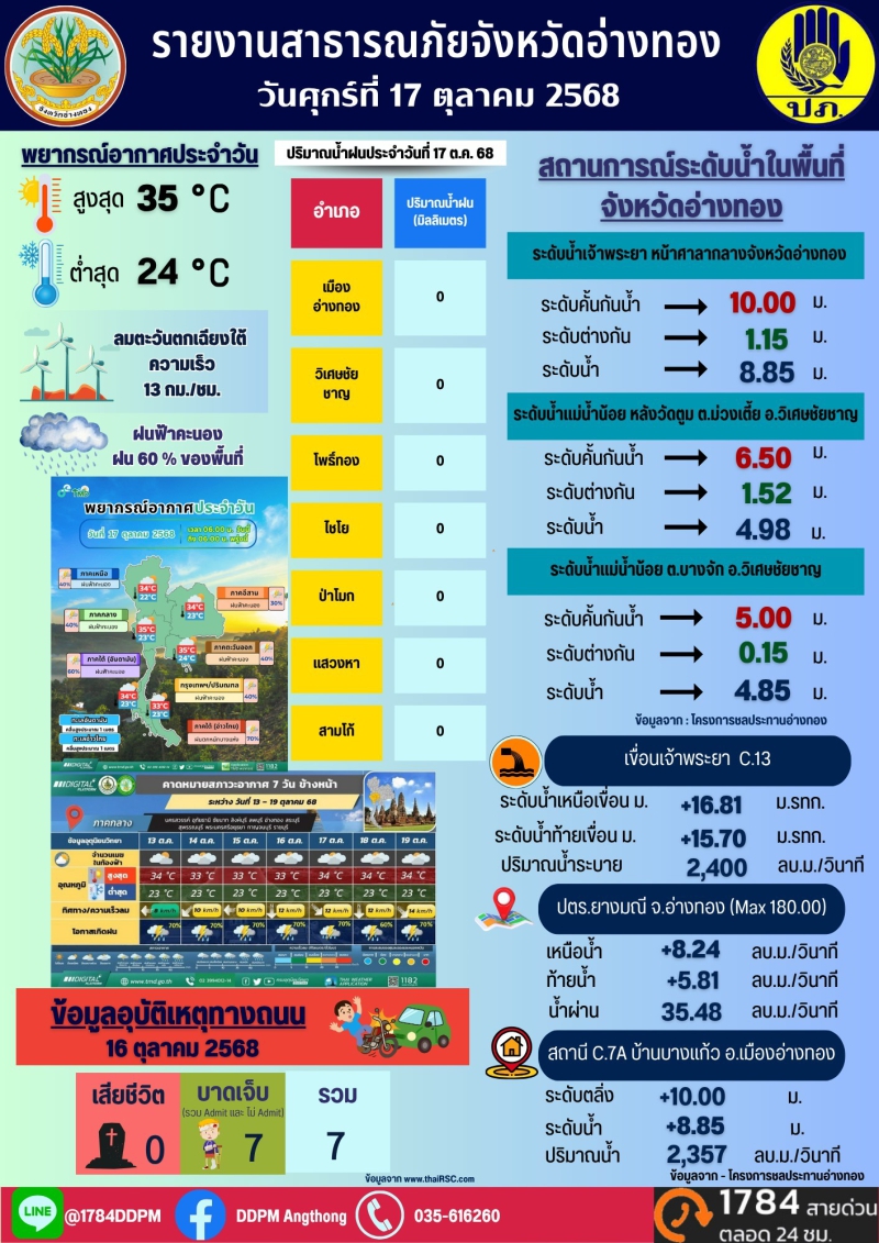 *****ขอให้พี่น้องประชาชนจังหวัดอ่างทองทุกพื้นที่ ยังคงเฝ้าระวังติดตามสถานการณ์อย่างใกล้ชิด