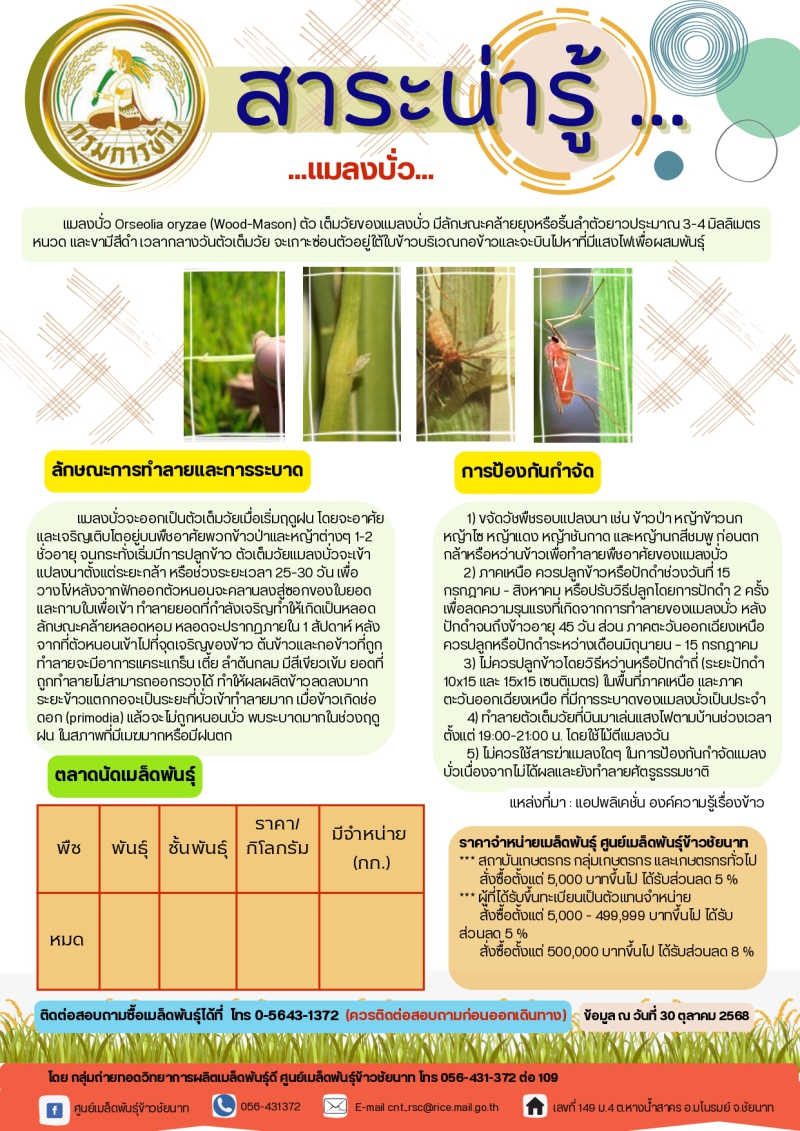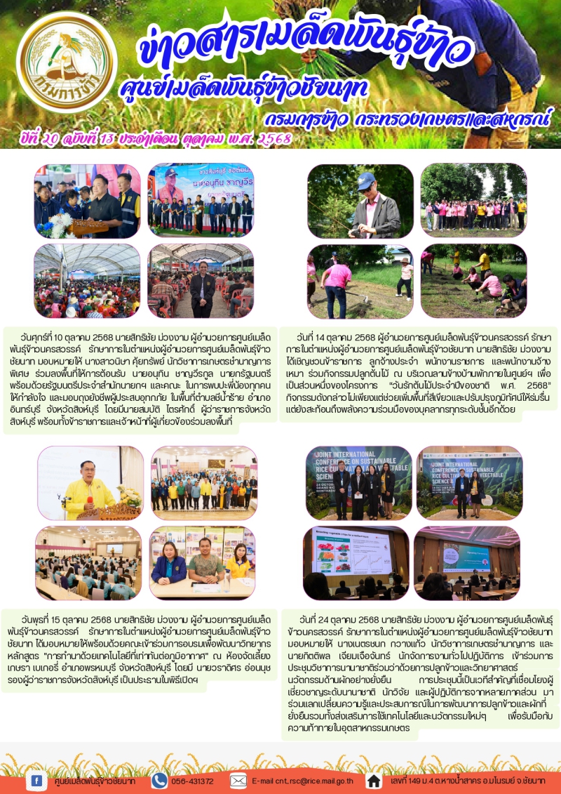 ประชาสัมพันธ์ ข่าวสารเมล็ดพันธุ์ข่าวชัยนาท ประจำเดือนตุลาคม 2568
