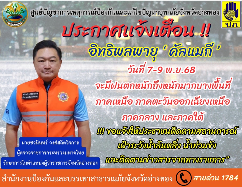 ประชาสัมพันธ์แจ้งเตือน 7- 9 พฤศจิกายน 2568