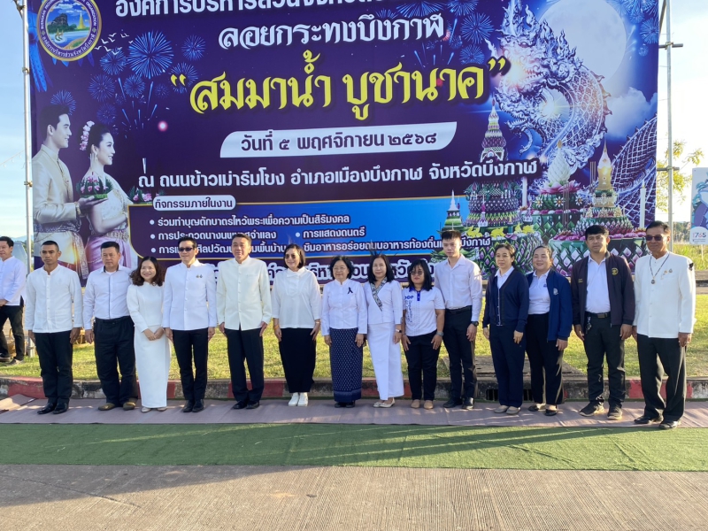 วันพุธที่ 5 พฤศจิกายน 2568 เวลา 06.30 น. นางสาววลีรัตน์ นามปัญญา เกษตรและสหกรณ์จังหวัดบึงกาฬ พร้อมด้วยเจ้าหน้าที่สำนักงานเกษตรและสหกรณ์จังหวัดบึงกาฬ เข้าร่วมกิจกรรมทำบุญตักบาตร ภายใต้โครงการส่งเสริมอนุรักษ์วัฒนธรรมท้องถิ่นประเพณีลอยกระทงจังหวัดบึงกาฬ (งานลอยกระทงบึงกาฬ “สมมาน้ำ บูชานาค”) ณ บริเวณถนนข้าวเม่าริมโขง ตำบลบึงกาฬ อำเภอเมืองบึงกาฬ จังหวัดบึงกาฬ เพื่อสืบสานอนุรักษ์วัฒนธรรมท้องถิ่นประเพณีลอยกระทงจังหวัดบึงกาฬ ให้คงอยู่สืบไป โดยมี นายนคร ศิริปริญญานันท์ รองผู้ว่าราชการจังหวัดบึงกาฬ รักษาราชการแทนผู้ว่าราชการจังหวัดบึงกาฬ เป็นประธานในพิธี