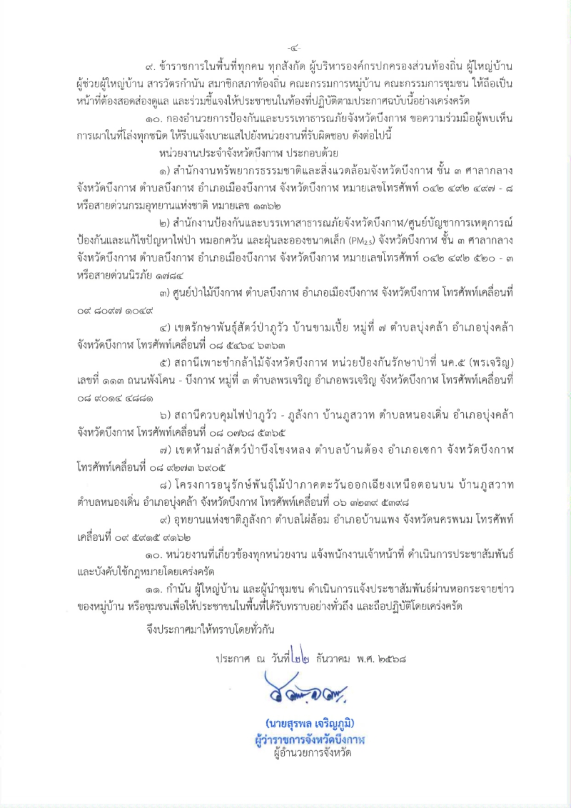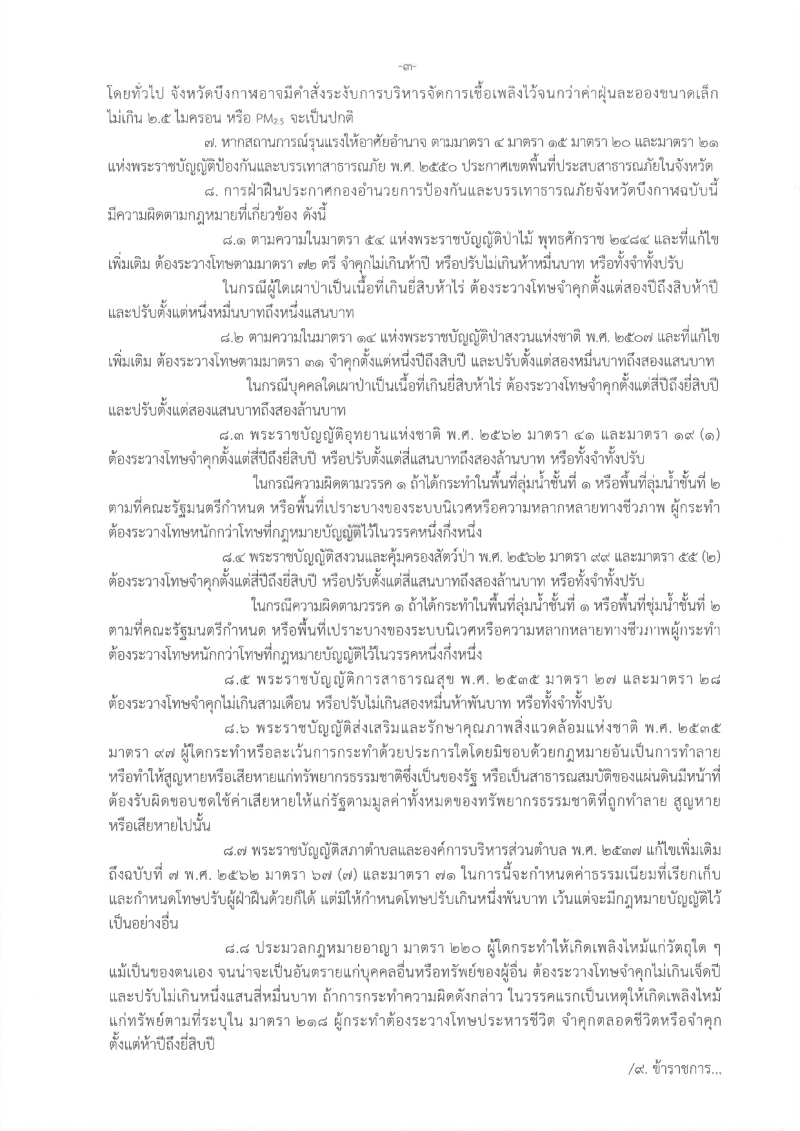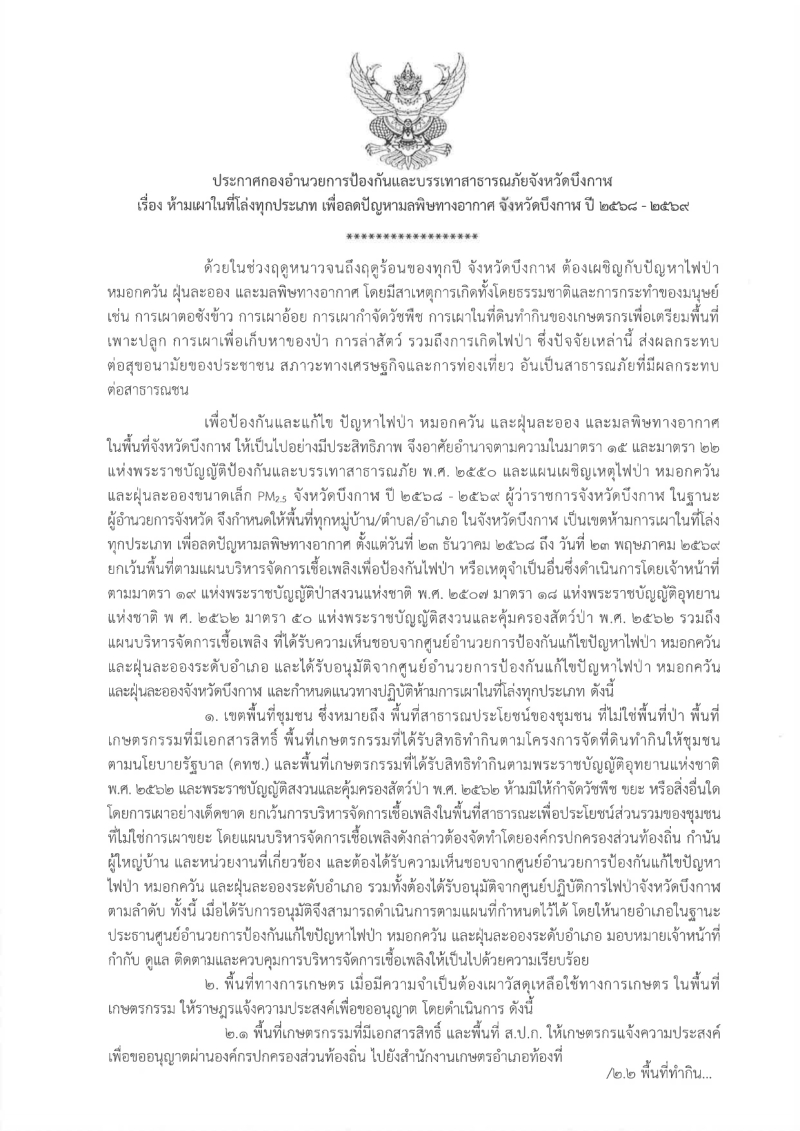 ประกาศห้ามเผาในที่โล่งทุกประเภท