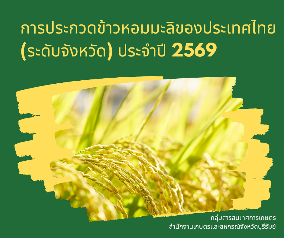 ประชาสัมพันธ์เพื่อเตรียมความพร้อมการเก็บเกี่ยวผลผลิตข้าวหอมมะลิ เข้าร่วมประกวด ข้าวหอมมะลิของประเทศไทย(ระดับจังหวัด) จังหวัดบุรีรัมย์ ประจำปี 2569
