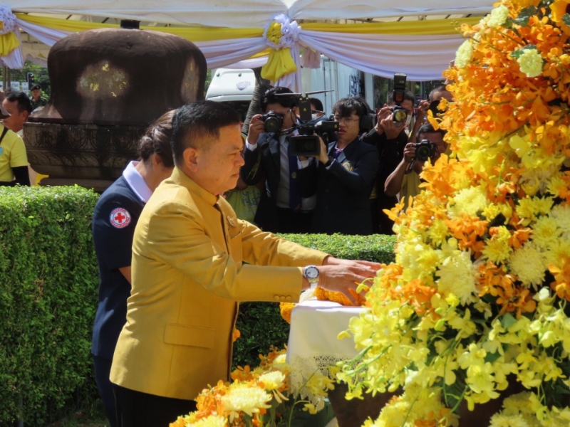 วันที่ 13 ตุลาคม 2566 เวลา 10.00 น. นายเอก อุ่นจิตต์วรรธนะ เกษตรและสหกรณ์จังหวัดบุรีรัมย์ พร้อมด้วยหัวหน้าส่วนราชการและรัฐวิสาหกิจ ข้าราชการและเจ้าหน้าที่ สังกัดกระทรวงเกษตรและสหกรณ์จังหวัดบุรีรัมย์ และหน่วยงานในจังหวัดบุรีรัมย์ ส่วนราชการ และภาคเอกชน ร่วมกันจัดนิทรรศการเทิดพระเกียรติ พระบาทสมเด็จพระบรมชนกาธิเบศร มหาภูมิพลอดุลยเดชมหาราช บรมนาถบพิตร เนื่องในวัน “นวมินทรมหาราช" 13 ตุลาคม 2566 โดยนายนฤชา โฆษาศิวิไลซ์ ผู้ว่าราชการจังหวัดบุรีรัมย์ นายกเหล่ากาชาดจังหวัด หัวหน้าส่วนราชการและภาคเอกชน วางพวงมาลัยถวายสักการะรูปหล่อพระบาทสมเด็จพระบรมชนกาธิเบศร มหาภูมิพลอดุลยเดชมหาราช บรมนาถบพิตร ทรงผนวช ที่ประดิษฐานลานด้านหน้าสนามช้างอารีนา และเยี่ยมชมนิทรรศการพระราชประวัติ และพระอัจฉริยภาพ ด้านต่างๆ อาทิ ด้านการศึกษาและอาชีพ ด้านการแพทย์ การเกษตร จอมทัพไทย การกีฬาดนตรี ศาสนา โครงการพระราชดำริและ การเสด็จเยือนราษฎรพื้นที่จังหวัดบุรีรัมย์ ณ บริเวณด้านหน้าสนามช้างอารีนา ต.อิสาณ อ.เมือง จังหวัดบุรีรัมย์