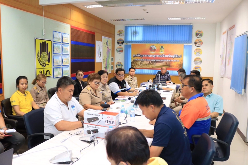 วันที่ 2 ตุลาคม 2566 เวลา 16.00 น. นายไชยวัฒน์ จุนถิระพงศ์ ผู้ว่าราชการจังหวัดบุรีรัมย์ พร้อมด้วย นายสัญญ์ธวัชช์ ริ้วเหลือง หัวหน้าสำนักงานป้องกันและบรรเทาสาธารณภัยจังหวัดบุรีรัมย์ นางนิ่มนวล ประสงค์ดี หัวหน้ากลุ่มช่วยเหลือและโครงการพิเศษ แทนเกษตรและสหกรณ์จังหวัดบุรีรัมย์ และส่วนราชการที่เกี่ยวข้อง ร่วมประชุมกองอำนวยการป้องกันและบรรเทาสาธารณภัยกลาง (กอปภ.ก.) ในการติดตามสถานการณ์อุทกภัยและการให้ความช่วยเหลือในพื้นที่ ผ่านระบบประชุมทางไกลจากห้องประชุมกองบัญชาการป้องกันและบรรเทาสาธารณภัยแห่งชาติ อาคาร 3 ชั้น 5 กรมป้องกันและบรรเทาสาธารณภัย มายัง ณ ห้องประชุมสำนักงานป้องกันและบรรเทาสาธารณภัยจังหวัดบุรีรัมย์ โดยมี นายอนุทิน ชาญวีรกูล รองนายกรัฐมนตรีและรัฐมนตรีว่าการกระทรวงมหาดไทย เป็นประธานในการประชุม พร้อมทั้งกำชับให้ทุกจังหวัดเร่งกำหนดแนวทาง/ดำเนินการแก้ไขปัญหาการให้ความช่วยเหลือประชาชนที่ได้รับผลกระทบจากอุทกภัย พร้อมทั้งให้กรมป้องกันและบรรเทาสาธารณภัย ได้เร่งประสานจังหวัด องค์กรปกครองส่วนท้องถิ่นและหน่วยงานที่เกี่ยวข้อง ลงพื้นที่ดูแลให้การช่วยเหลือผู้ประสบภัยอย่างเต็มกำลัง ทั้งนี้ หากประชาชนที่ได้รับความเดือดร้อนจากสาธารณภัย สามารถแจ้งเหตุและขอความช่วยเหลือทางไลน์ “ปภ.รับแจ้งเหตุ 1784” และสายด่วนนิรภัย 1784 ตลอด 24 ชั่วโมง นอกจากนี้ ประชาชนยังสามารถติดตามประกาศการแจ้งเตือนภัยได้ที่แอปพลิเคชัน “THAI DISASTER ALERT”