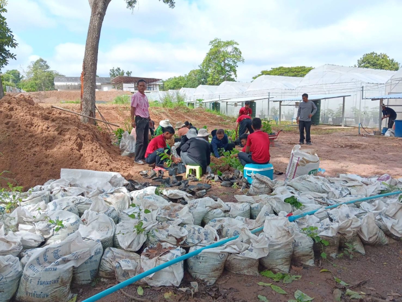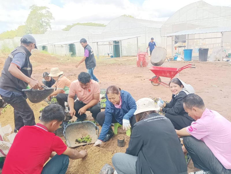 -สนับสนุนเครื่องจักรกล รถไถ ไถพรวนแปลง หลังโรงเรือนเพื่อหว่านปอเทืองและปรับพื้นที่หน้าโรงเรือนสาธิต