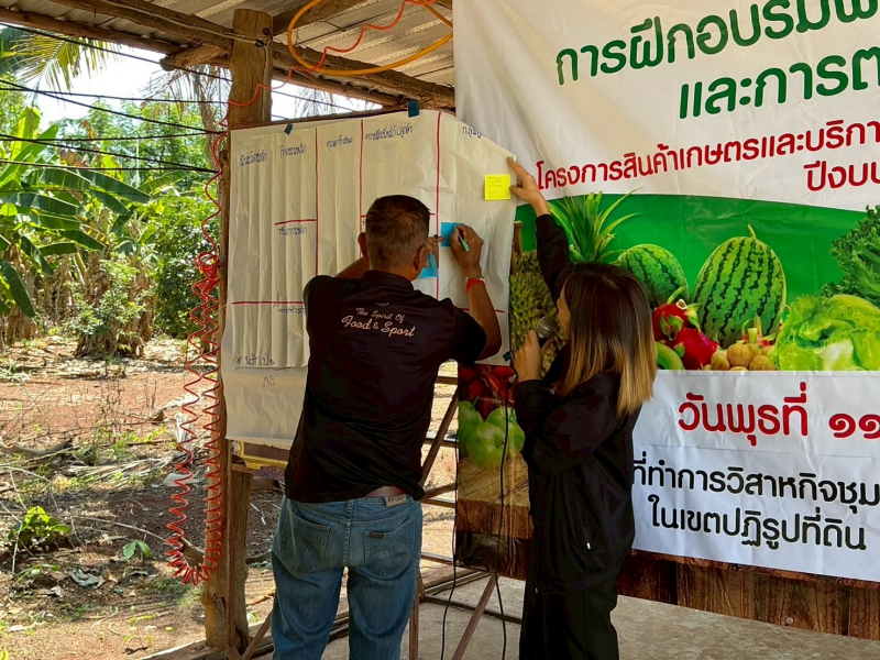 ณ ที่ทำการวิสาหกิจชุมชนผักผลไม้สายน้ำแร่ แดนดินถิ่นภูเขาไฟ ในเขตปฏิรูปที่ดิน อำเภอโนนสุวรรณ จังหวัดบุรีรัมย์