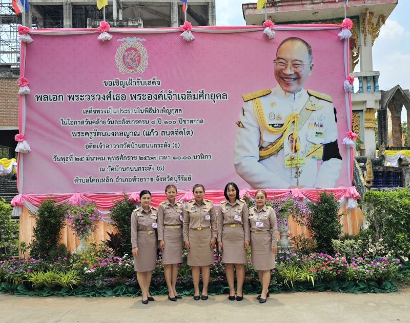 นางสาววลีรัตน์ นามปัญญา เกษตรและสหกรณ์จังหวัดบุรีรัมย์ มอบหมายให้ นางดริญญา สุวรรณบุตร์ นักวิเคราะห์นโยบายและแผนชำนาญการพิเศษ หัวหน้ากลุ่มยุทธศาสตร์พัฒนาการเกษตร พร้อมบุคลากร ร่วมเฝ้ารับเสด็จ พระวรวงศ์เธอ พระองค์เจ้าเฉลิมศึกยุคล ในโอกาสเสด็จมาเป็นประธานในพิธีบำเพ็ญกุศลอุทิศถวายเนื่องในโอกาสวันคล้ายวันละสังขารครบ 8 ปี และวาระมงคลครบ 100 ปีชาตกาล พระครูรัตนมงคล (แก้ว สนฺตจิตฺโต) อดีตเจ้าอาวาสวัดบ้านถนนกระสัง พระเกจิอาจารย์ผู้เป็นที่เคารพเลื่อมใสศรัทธาของศิษยานุศิษย์และพุทธศาสนิกชนชาวบุรีรัมย์