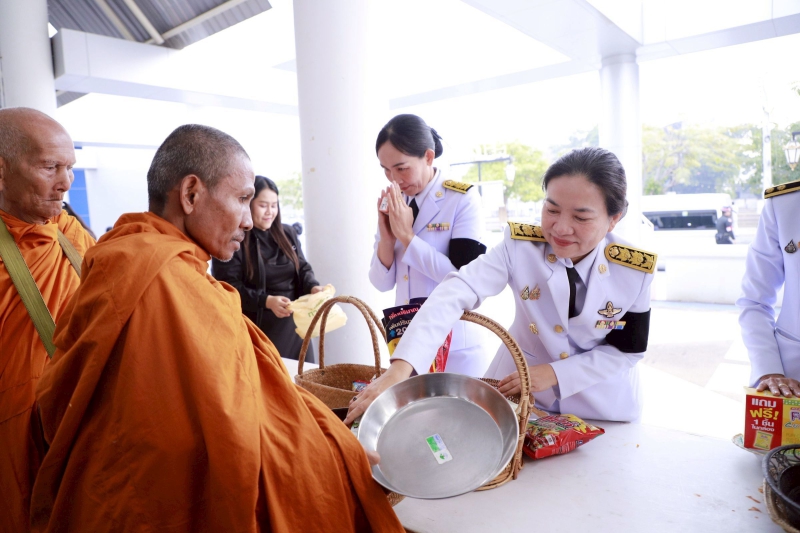 นางสาววลีรัตน์ นามปัญญา เกษตรและสหกรณ์จังหวัดบุรีรัมย์ พร้อมบุคลากร ร่วมพิธีสวดพระพุทธมนต์และพิธีทำบุญตักบาตรถวายพระราชกุศล เนื่องในวันพ่อขุนรามคำแหงมหาราช