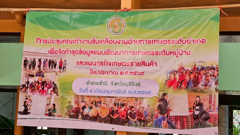 นางสาววลีรัตน์ นามปัญญา เกษตรและสหกรณ์จังหวัดบุรีรัมย์ มอบหมายให้ นางดริญญา สุวรรณบุตร์ นักวิเคราะห์นโยบายและแผนชำนาญการพิเศษ พร้อมบุคลากร ร่วมประชุมคณะทำงานขับเคลื่อนงานด้านการเกษตรระดับอำเภอ เพื่อดำเนินการจัดทำข้อมูลแผนพัฒนาการเกษตรระดับหมู่บ้าน และจัดทำแผนธุรกิจรายสินค้า(ข้าวกล้องงอก) ตามกลุ่มเป้าหมายโครงการขับเคลื่อนการเกษตรระดับหมู่บ้าน สู่การผลิตสินค้าเกษตรมูลค่าสูง ปีงบประมาณ พ.ศ. 2569 โดยมีนางวีนา อดีตรัมย์ เกษตรอำเภอชำนิ เป็นประธาน