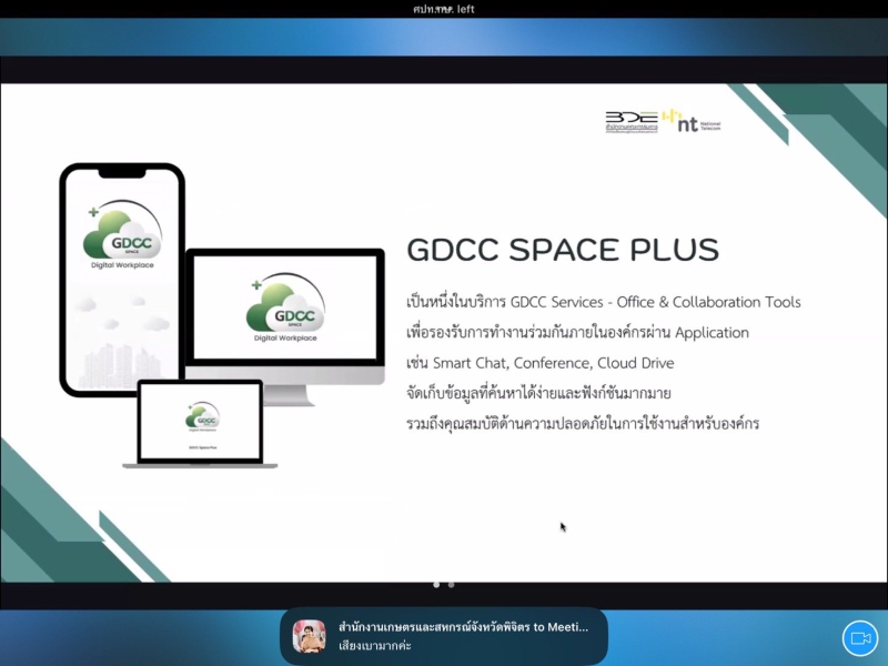 กษ.ร่วมประชุมชี้แจงการใช้งานแอปพลิเคชัน GDCC Space Plus ภายใต้โครงการคลาวด์กลางภาครัฐ (GDCC) ของสำนักงานปลัดกระทรวงเกษตรและสหกรณ์