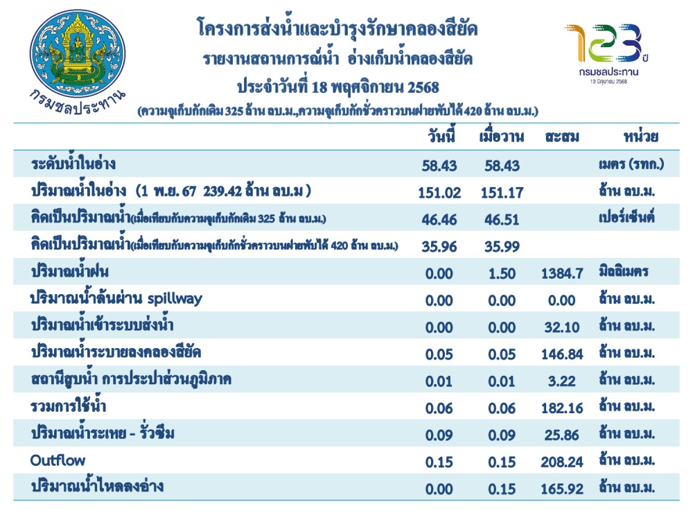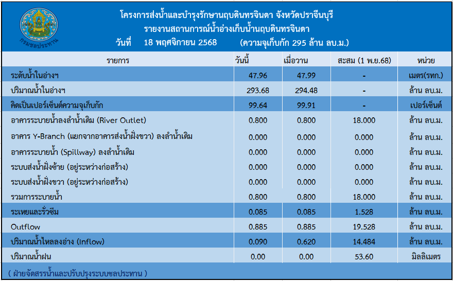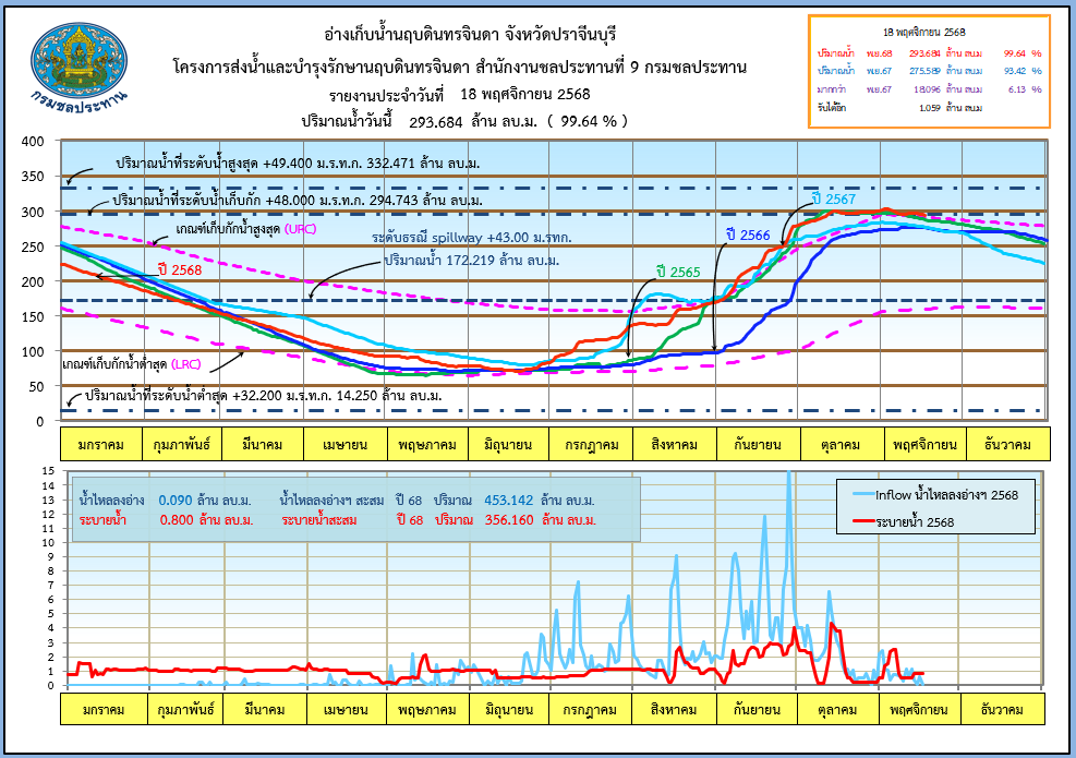 รายงานสถานการณ์น้ำประจำวันที่ 19 พฤศจิกายน 2568